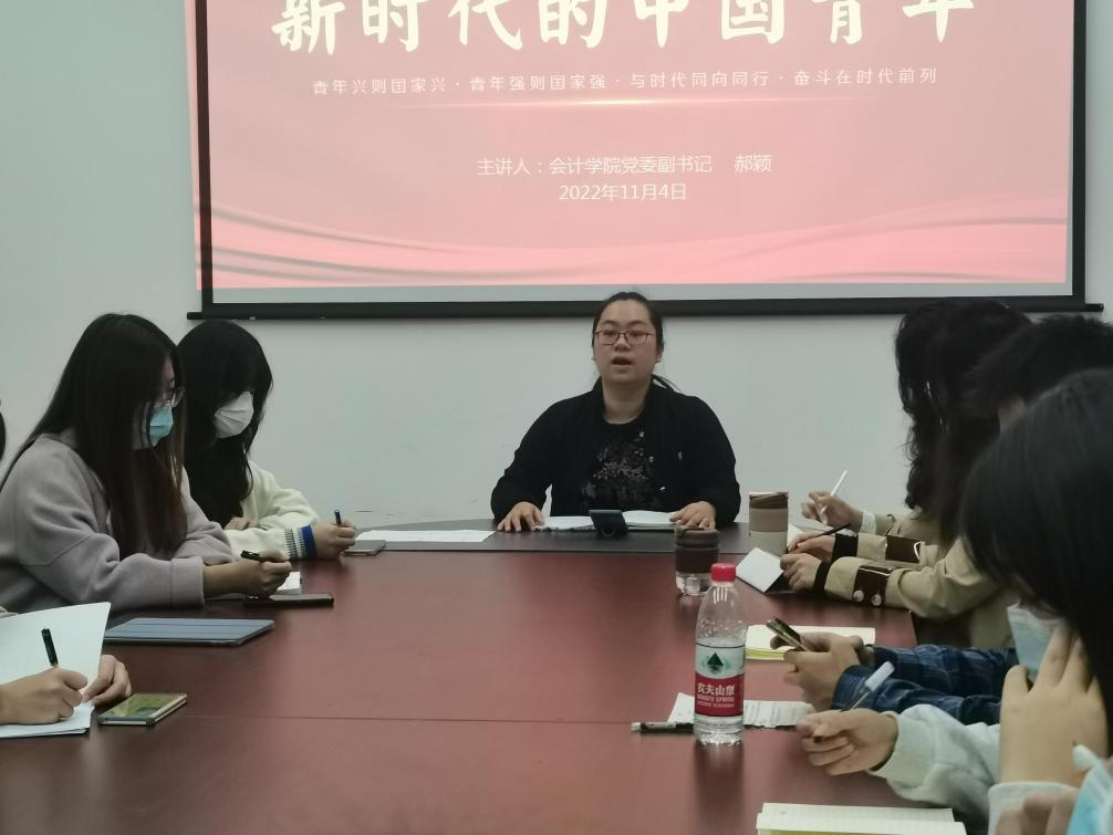 郝颖领学了党的二十大报告,并结合习近平总书记报告中关于青年的论述和习近平《论党的青年工作》,强调学生要通过学习党的二十大精神、学习《论党的青年工作》,做到志存高远、德才并重、情理兼修、勇于开拓,增强做中国人的志气、骨气、底气。她指出新时代的中国青年,生逢中华民族发展的最好时期,要勇挑重担堪当大任,在基层一线经受磨砺、在创新创业中走在前列、在社会文明建设中引风气之先。她强调新时代中国青年要胸怀世界展现担当,做到更加开放自信地融入世界,展现构建人类命运共同体的青春担当,积极参与中国青年的全球行动倡议。同时也要坚持人民至上做新时代有为青年,让青春在全面建设社会主义现代化国家的火热实践中绽放绚丽之花。