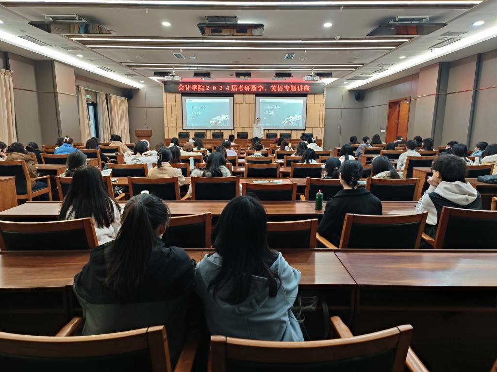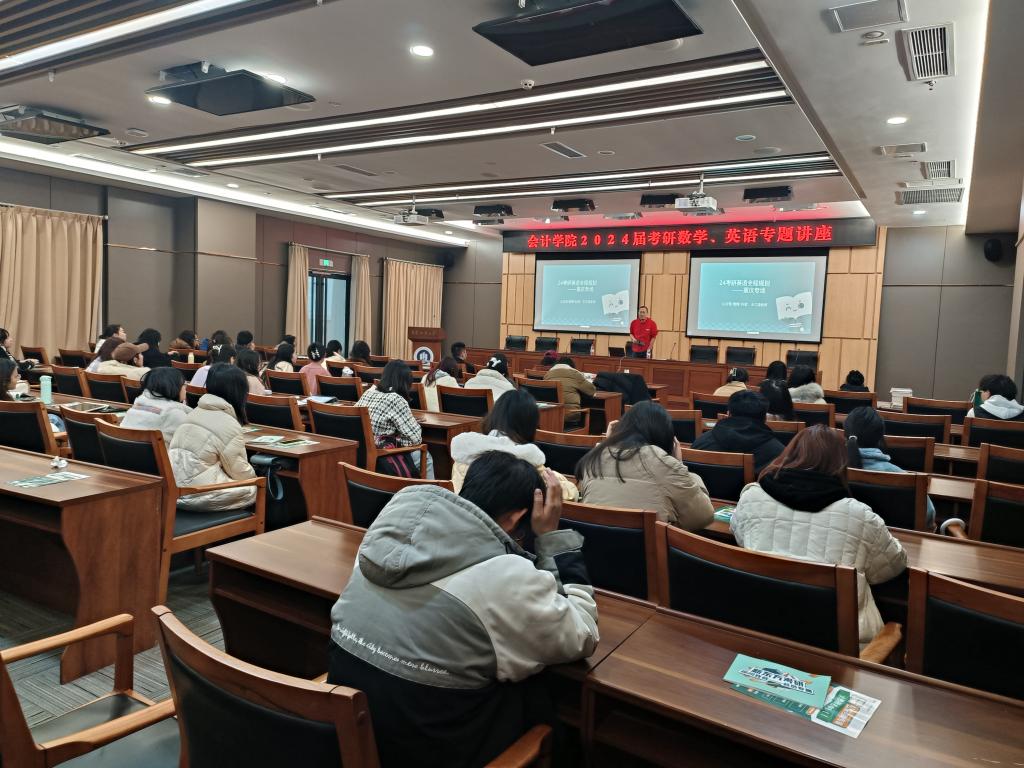 随后,王江涛老师从攻克词汇、精研真题、适当模考三个方面对考研英语作了详实的讲解。他谈到,背单词从不是死记硬背,用最薄的单词本也会记下最丰富的词汇。分享之余,他用三位过往学子的成功案例激励所有备考的会计学子:做好选择,坚持去做,总会有结果。