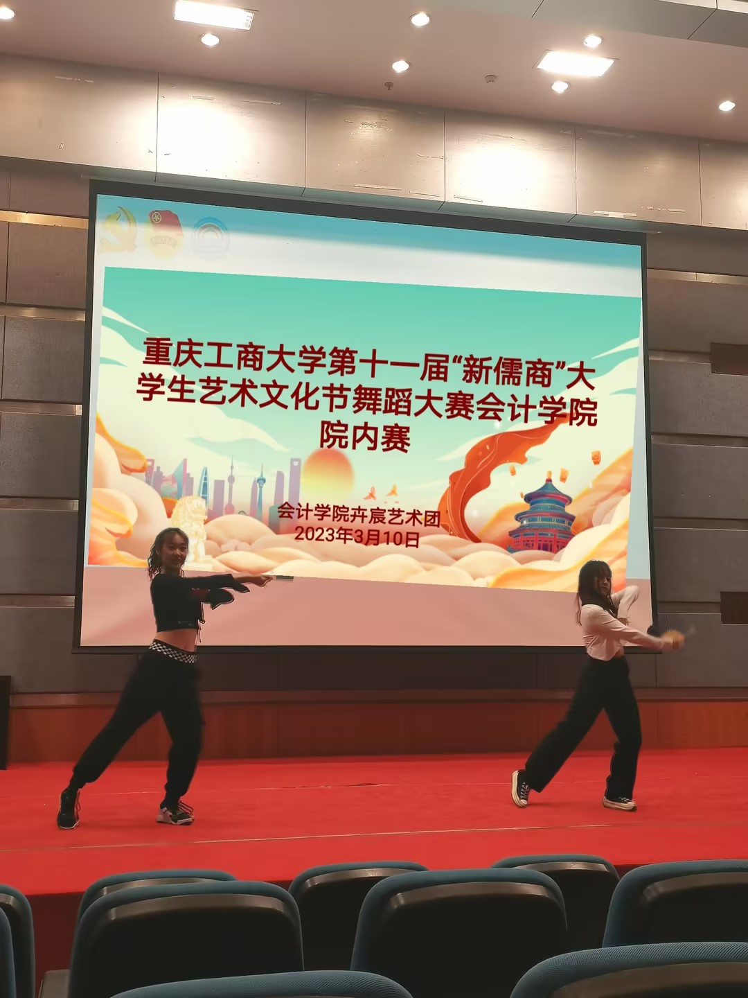 为丰富我院学生课余文化生活,营造轻松、活跃的文化氛围,积极推动我院精神文明建设,促进我院舞蹈艺术的进一步发展和繁荣,由9428cn太阳集团古天乐分团委主办、卉宸艺术团承办的第十一届“新儒商”大学生艺术文化节舞蹈大赛9428cn太阳集团古天乐院内赛于2023年3月10日17时在博智楼7100报告厅成功举办。