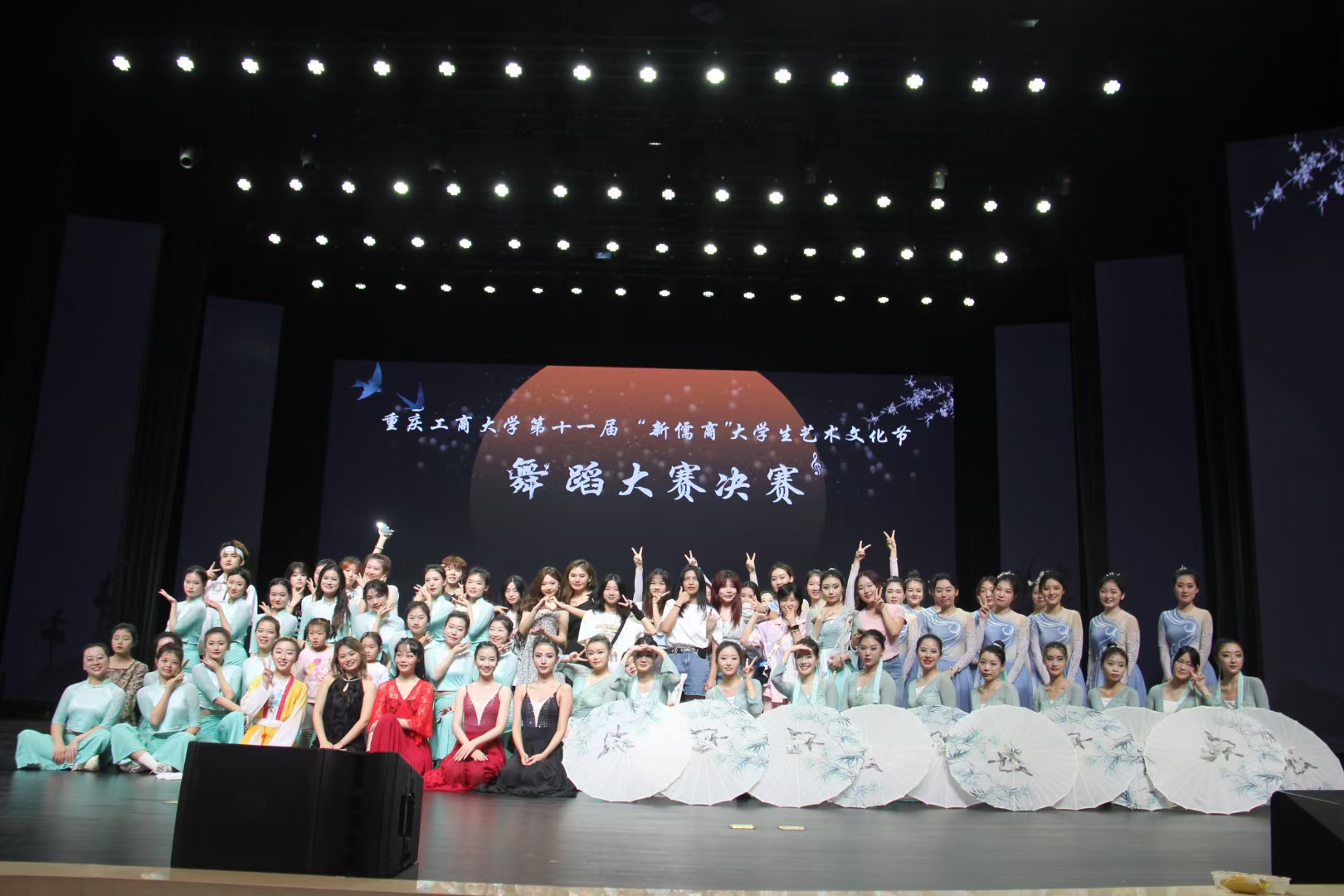 为丰富我校学生课余文化生活,营造轻松、活跃的校园文化氛围,积极推动我校精神文明建设,促进我校舞蹈艺术的进一步发展和繁荣,由共青团重庆工商大学委员会主办、9428cn太阳集团古天乐卉宸艺术团承办的第十一届“新儒商”大学生艺术文化节舞蹈大赛决赛于4月21日18:00在南岸校区图书馆剧场隆重举行。大赛邀请重庆文化协会委员张燚枝、重庆舞蹈协会街舞协会指导老师乔娇、重庆交通大学校艺术团指导老师徐菁、南岸区文联委员龚靖翕、重庆工商大学校艺术团指导老师王灿作为评审嘉宾,活动参与人数达1200余人次。
