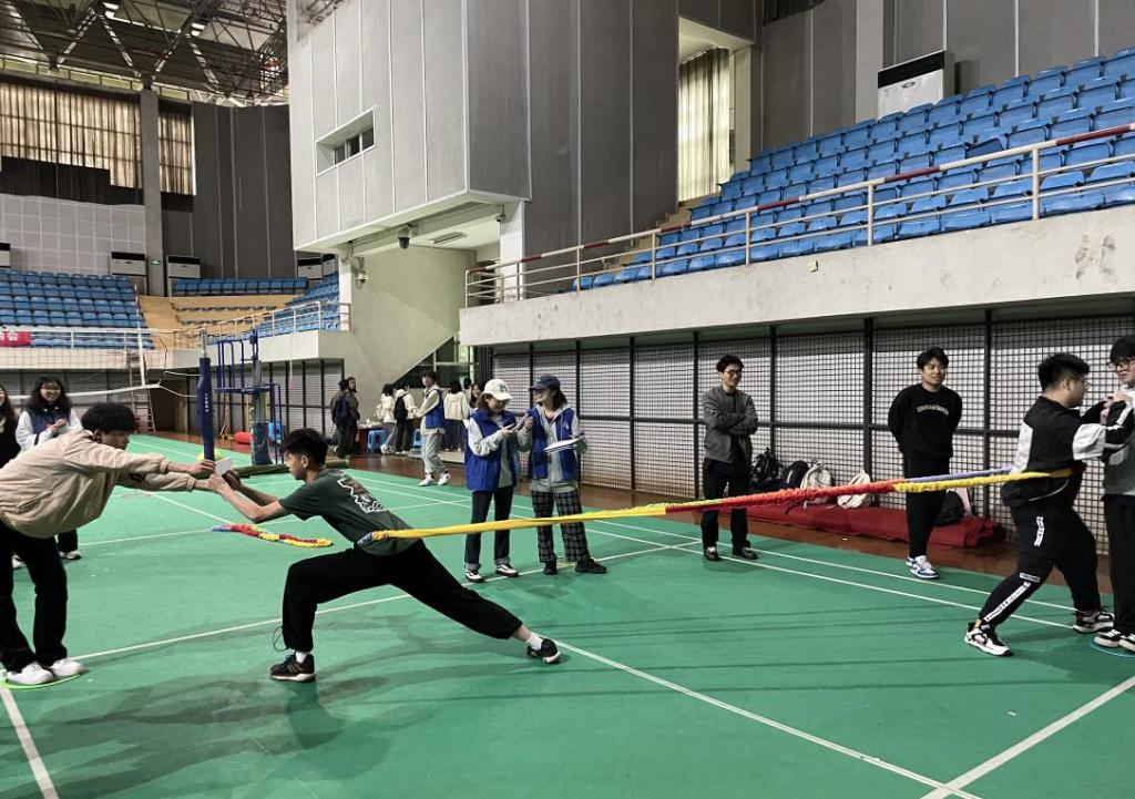 为响应党的二十大“广泛开展全民健身活动,加强青少年体育工作,促进群众体育和竞技体育全面发展,加快建设体育强国”的号召,丰富师生课余生活,增强师生凝聚力,展现新时代大学师生的活力和热情,9428cn太阳集团古天乐于2023年4月23日在南岸校区体艺馆举办了“与你相‘寓’,‘会’乐同行”2023年春季趣味运动会。本次趣味运动会包含了“寸步不离”“龟兔赛跑”“巨人脚步”“摸石过河”“东南西北跑”5个项目,师生共28组队伍参加,下面让我们一睹活动风采吧!