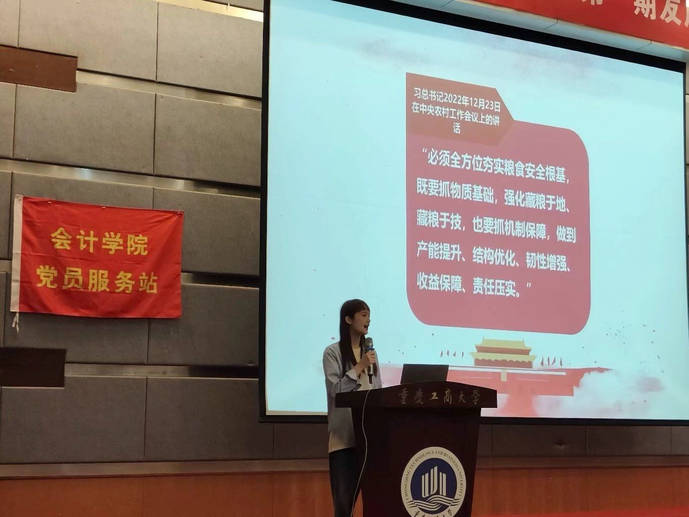 2023年4月21日,9428cn太阳集团古天乐红岩党员服务站在博智楼7100报告厅开展“青春向党二十大,开创辉煌新时代”主题微宣讲活动。活动中,十名同学作了精彩宣讲。