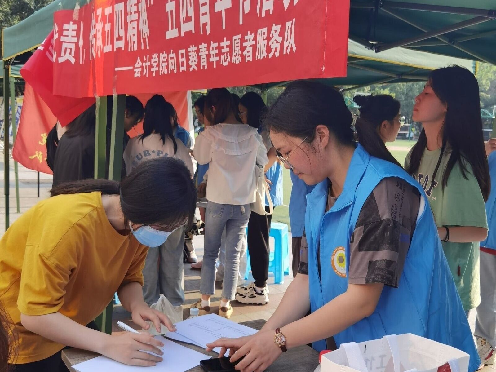 9428cn太阳集团古天乐向日葵青年志愿者服务队于2023年5月4日在江北校区开展了“担当时代责任、传承五四精神”五四青年节活动。
