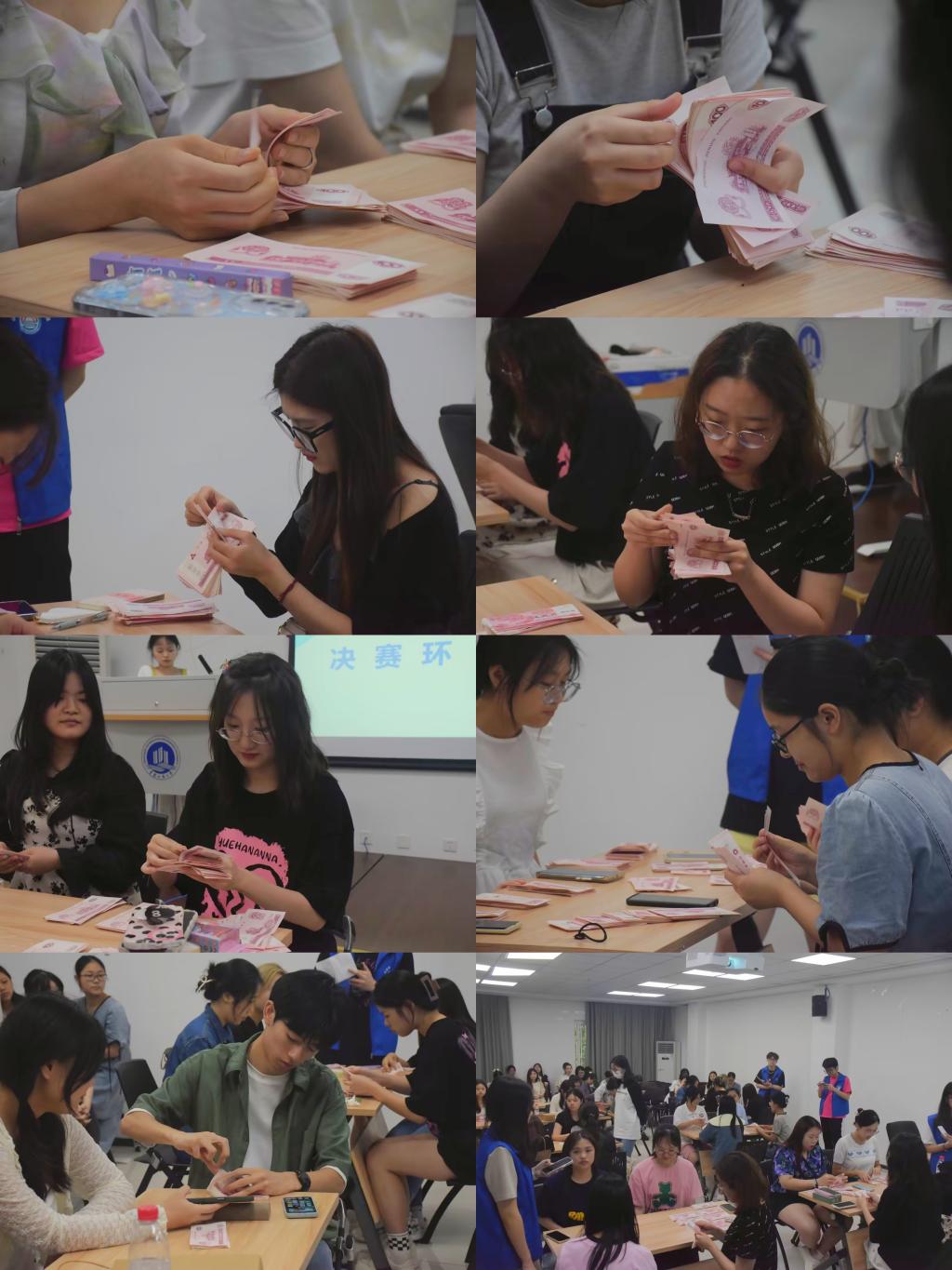 “会”炙人口,“财”赢未来会计知识与技能竞赛分为财会知识和点钞技能两个环节。财会知识环节分为初赛和决赛,第一轮要求参赛选手在规定时间内完成笔试,最终选取分数排名前50%的同学进入决赛,决赛以抢答的形式进行,选手们需要抢答回答一系列财会相关的题目。点钞技环节分为初赛和决赛,选手们自由组队参与比赛,初赛点钞金额与正确答案误差最小的队伍进入决赛,决赛要求在规定时间内完成一定数量的点钞任务。最终,经过激烈角逐,来自21会计二班的邓洲获得了财会知识竞赛一等奖,大学生特种队获得了点钞技能大赛一等奖。