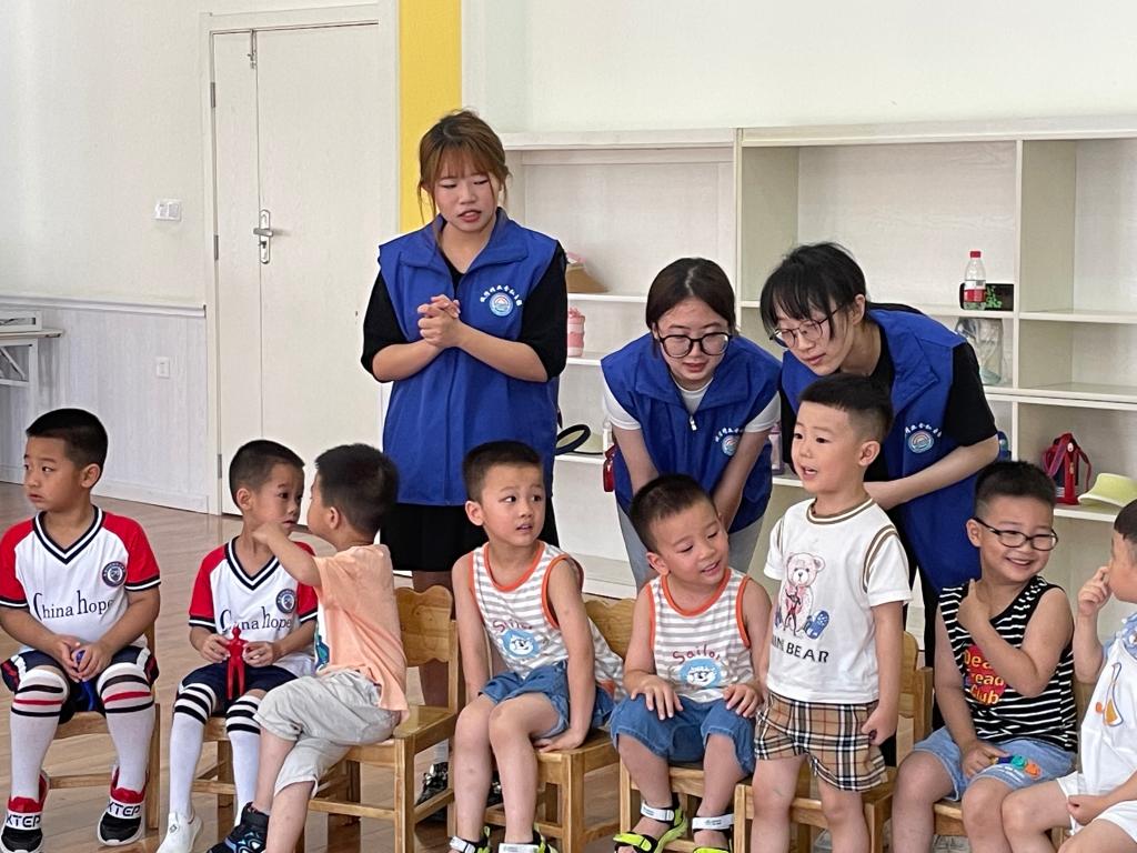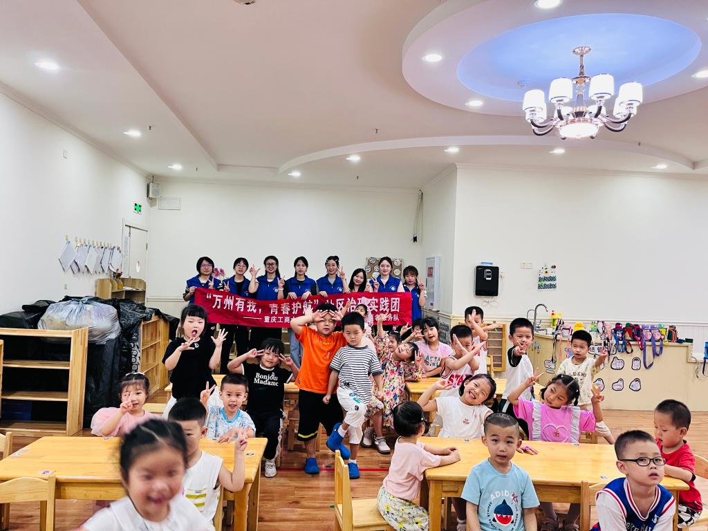 7月7日,重庆工商大学9428cn太阳集团古天乐向日葵青年志愿者服务队来到重庆市万州区牌楼街道大河沟社区幼儿园开展“普法宣讲,守护安全”课堂,分为两专题、多形式,以防拐防诈专题“TA是坏人”情景模拟和“对校园暴力说不”反校园暴力专题宣讲的形式,关爱青少年儿童,增加小朋友自我保护意识。
