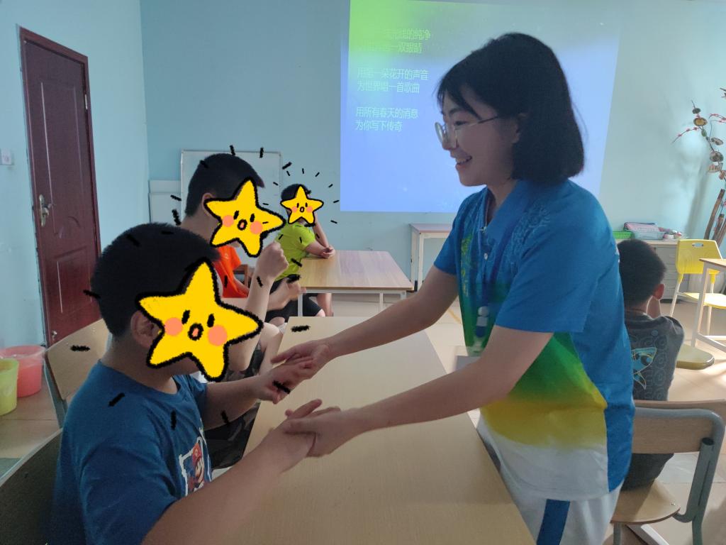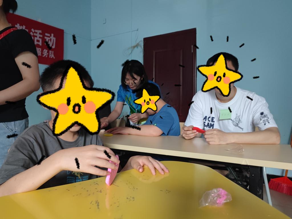 志愿者王良芳分享道:“今天和这群星星的孩子们一起在歌曲《感动》中随着音乐而律动、一起在《感动中国》视频中体会顽强不屈的人格魅力、一起用橡皮泥捏出属于自己的彩色星球、一起在垃圾分类中体会生活的乐趣……在这次活动的过程中,我和孩子们进行了语言和肢体上的互动,也碰撞出了心灵上的触动。也许很多时候,星星的孩子们会沉浸在自己的世界里,但是我们也可以走进他们的世界,收获惊喜。”