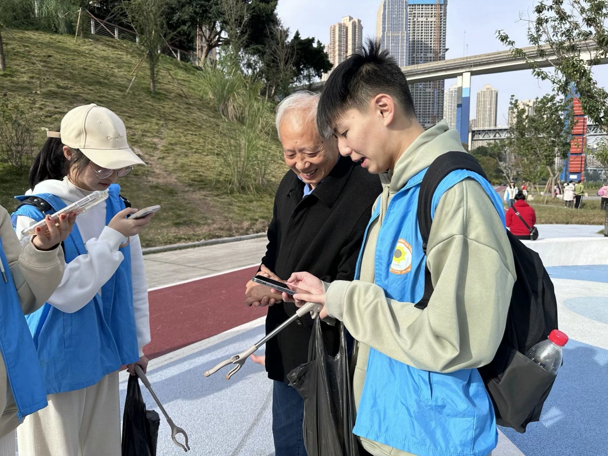 文明劝导在于行,文明建设在于共。下午一点五十分,志愿者们在重庆工商大学江北校区西门集合整队,并签订安全责任书,穿戴整齐后,负责人再次强调了安全工作,身穿蓝色马甲的志愿者们便拿上垃圾夹和垃圾袋,一起前往北滨路嘉陵江江边开展“河小青”活动。志愿者们在此次活动中,热情地向来往行人科普河湖保护的知识,引导人们树立文明观念,对人们的不文明行为(在江边乱扔垃圾、随地吐痰等,)进行制止并劝导,并向他们宣传文明知识,提升人们的文明意识。同时,志愿者们也向人们阐述着“绿水青山就是金山银山”的理念与保护嘉陵江的意义,力争让每一条河流、每一个湖泊都有人们的守护,提高了公众对环境保护的意识,为嘉陵江的美丽做出了自己的贡献。此次“河小青”活动的开展,得到了广大群众的积极响应。他们纷纷表示,文明劝导活动让他们更加深刻地认识到建设文明城市的重要性,今后将自觉保护环境、爱护河湖,为城市文明建设贡献自己的力量。嘉陵江的故事还在继续,重庆的明天必将更加精彩。