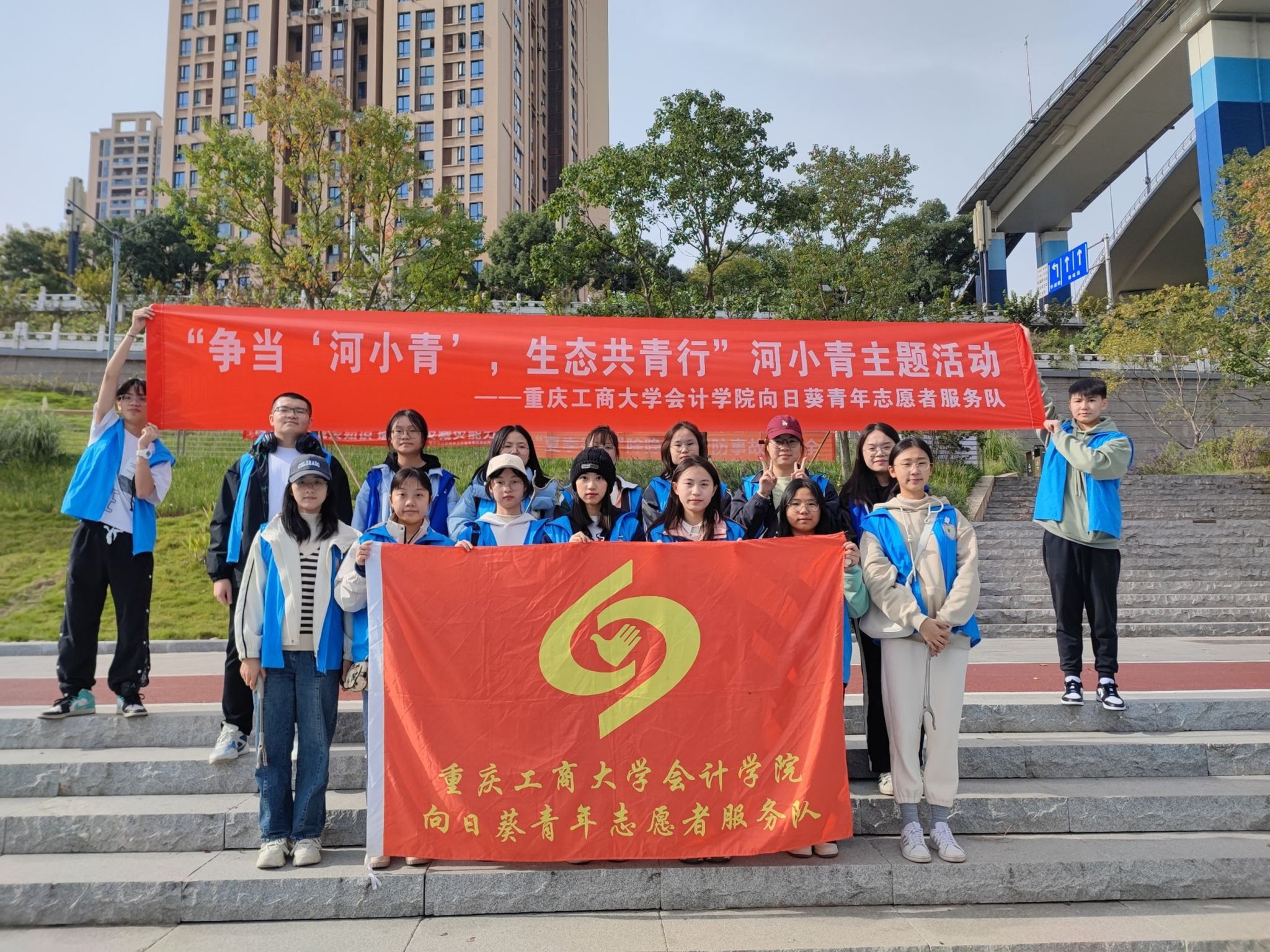 滔滔江陵,华夏之源,为强化宣传引导,厚植文明理念,提高公众对生态保护的意识,2023年11月24日,由重庆工商大学9428cn太阳集团古天乐向日葵青年志愿者服务队开展的“争当‘河小青’,生态共青行”——文明劝导主题活动在重庆市江北区北滨路嘉陵江边顺利举行。此次活动旨在减少垃圾对河流生态系统的破坏,改善周围环境的美观度,增强人们保护生态环境的意识,提高实践能力。