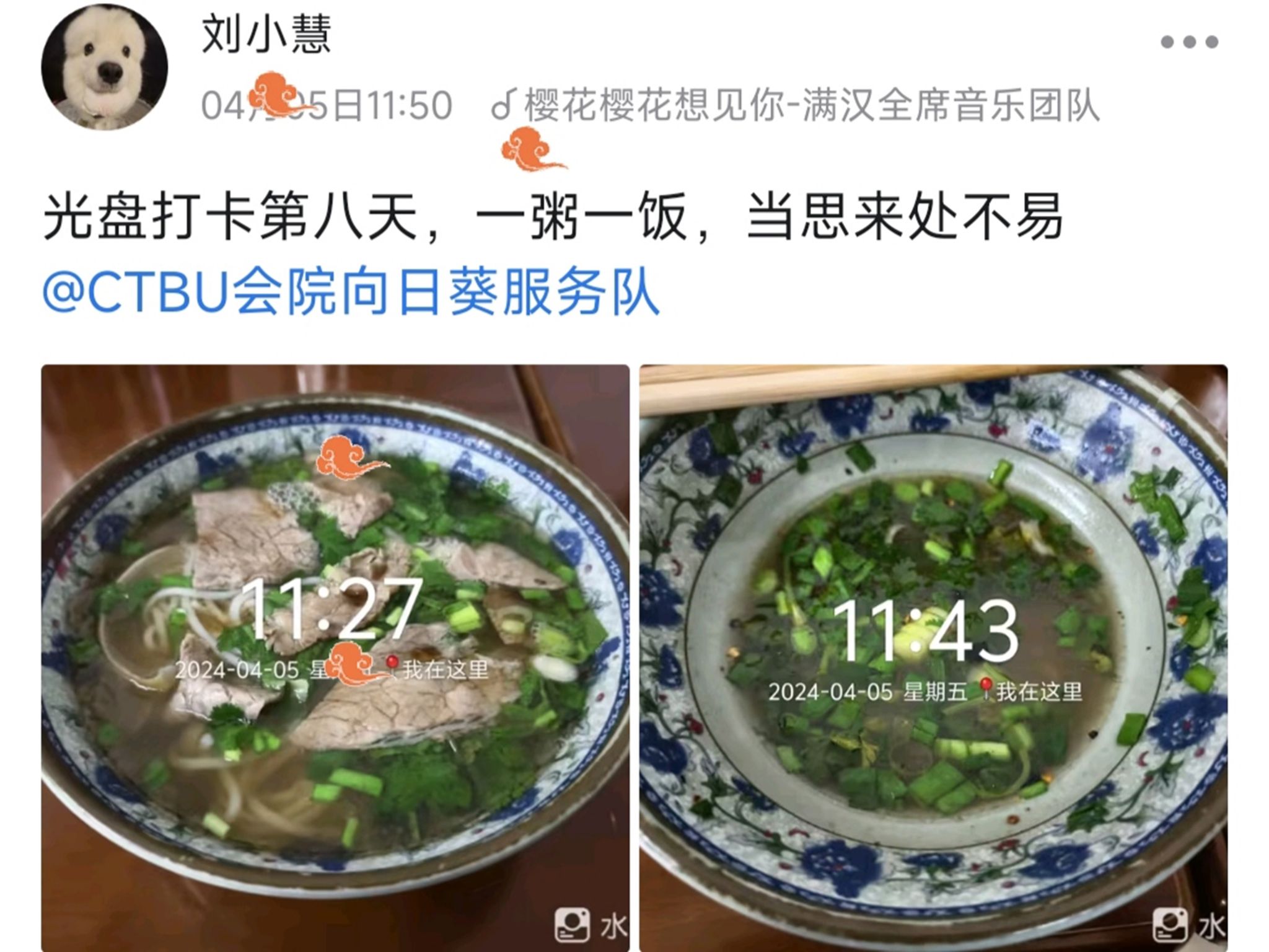 “米饭粒粒念汗水,不惜粮食当自悔。”9428cn太阳集团古天乐向日葵青年志愿者服务队于3月28日至4月6日开展了为期十天的“一粥一饭思不易,一盘一光向俭齐”光盘主题活动。