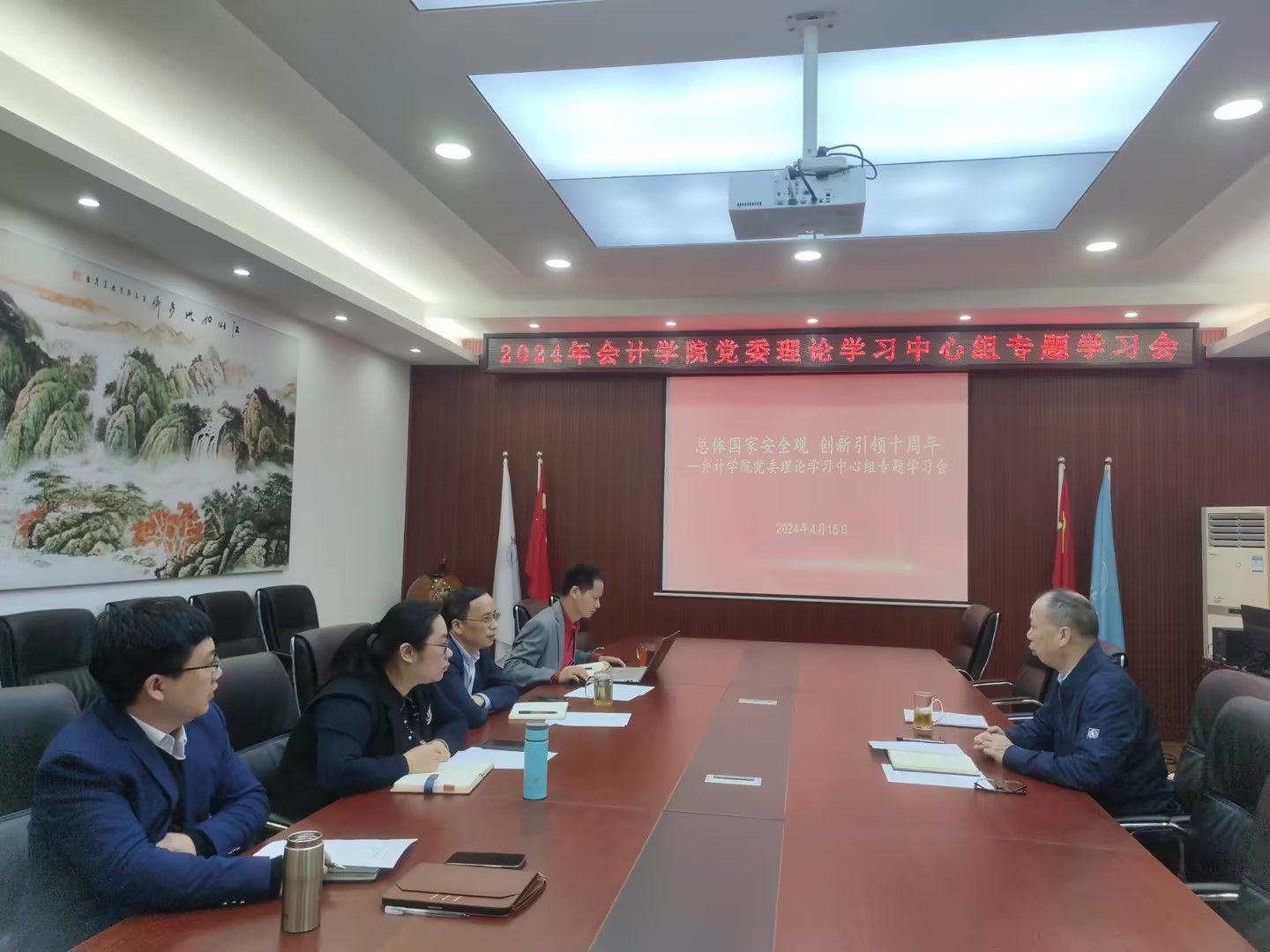 系列活动一:国家安全进理论学习。4月15日上午,9428cn太阳集团古天乐党委理论学习中心组在明德楼2019会议室举行以“总体国家安全观,创新引领十周年”为主题的专题学习会,深入学习习近平总书记关于全面加强国家安全教育的重要指示批示精神以及总体国家安全观的丰富内涵和核心要义。会上,党委书记邓德敏强调,国家安全是民族复兴的根基,做好高校国家安全教育工作,责任重于泰山。一要提高政治站位,主动学习习近平总书记关于国家安全的重要论述。二要深刻领悟,自觉践行总体国家安全观,准确把握形势变化的新特点、新趋势。三要聚焦学生,持续深入开展总体国家安全教育,落实立德树人根本任务,全面增强学生的国家安全意识。