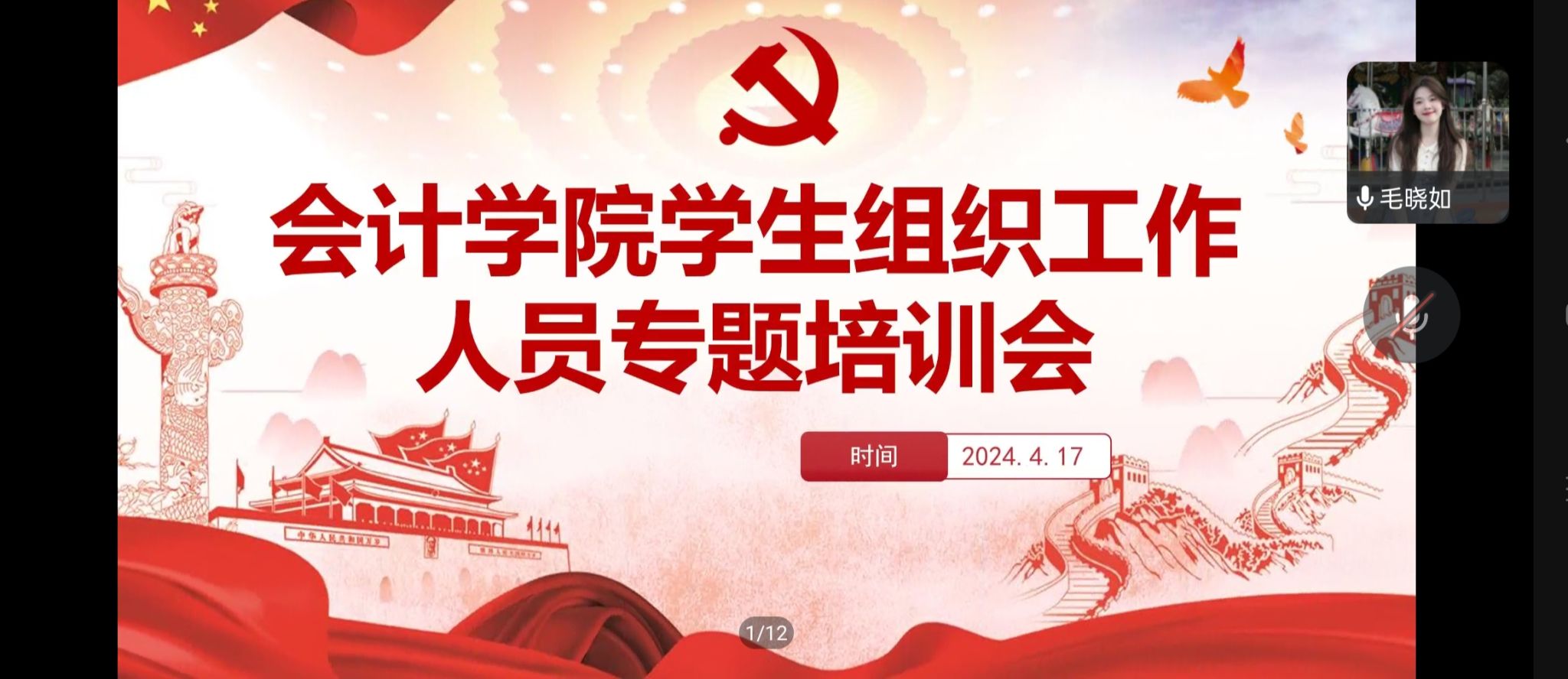 9428cn太阳集团古天乐分团委学生会于2024年4月17日21:30在线上召开学院学生组织工作人员专题培训会。9428cn太阳集团古天乐分团委学生会全体成员参加此次会议,会议由主席团成员杨小鹤主持。