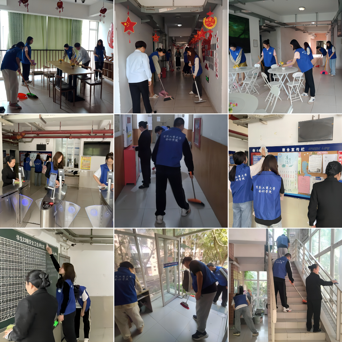 在各楼栋宿管阿姨的细心指导下,同学们以不怕脏、不怕累的态度积极参与其中,大家分工明确,干劲十足,手握清扫工具,细心的打扫着楼栋各公共区域的宣传栏、过道、门禁等卫生角落,为营造整洁、有序、舒适的楼栋生活环境贡献出自己的力量。