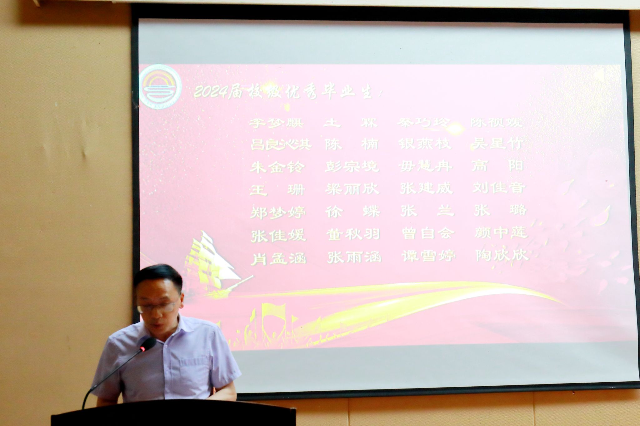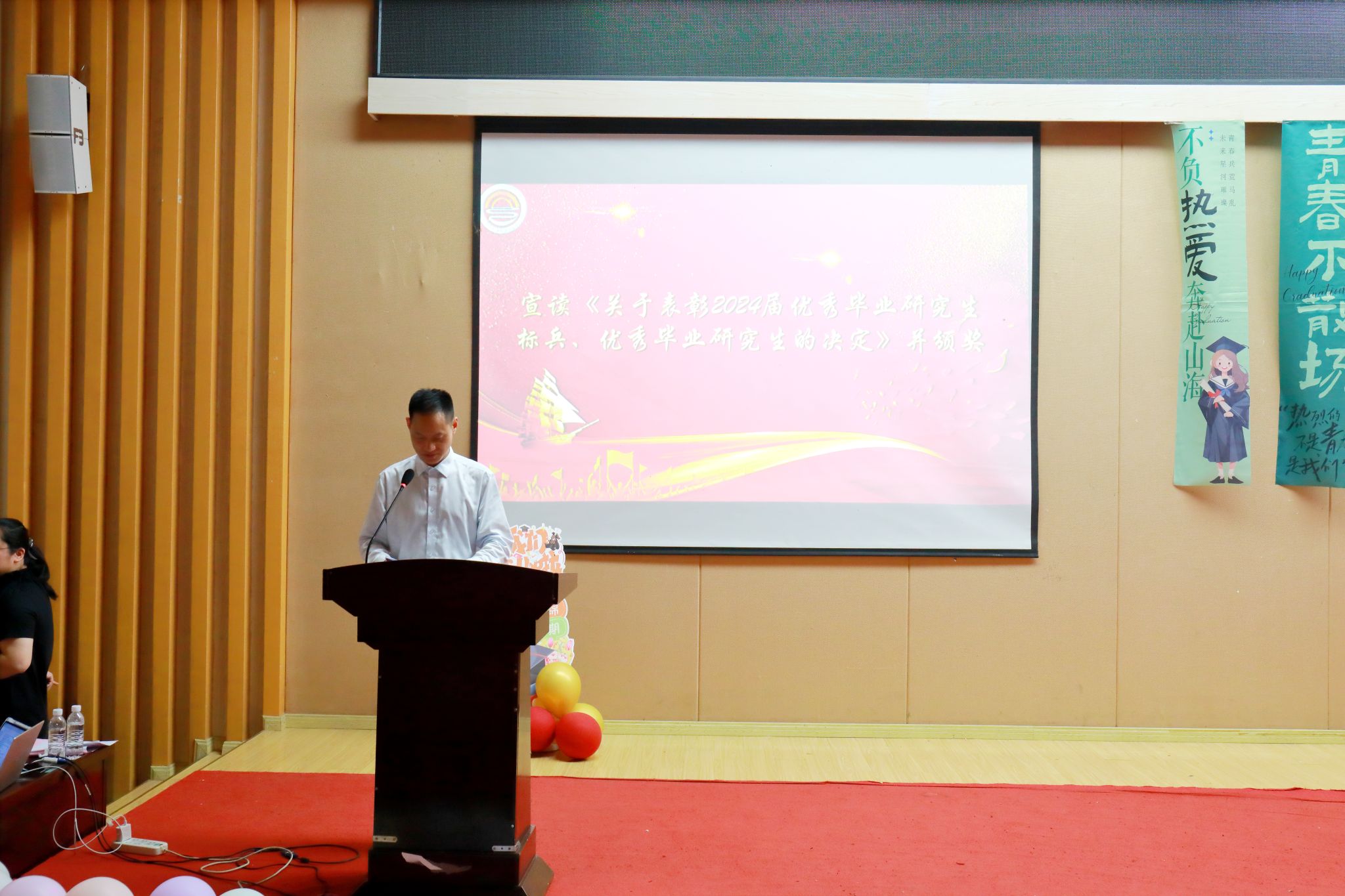 学院正处级专职组织员尹建平、学院副院长钟廷勇分别宣读《关于表彰2024届校级优秀毕业生的决定》、《关于表彰2024届优秀毕业研究生标兵、优秀毕业研究生的决定》并颁奖。