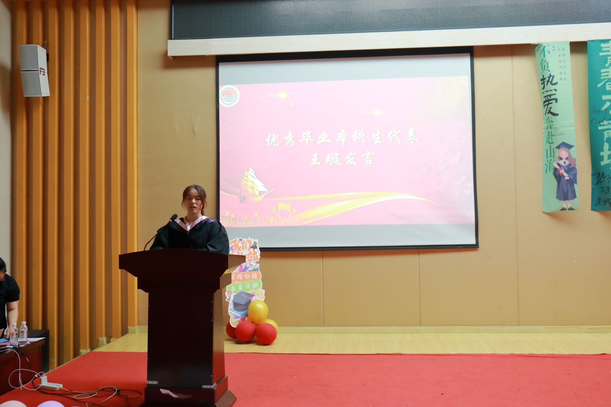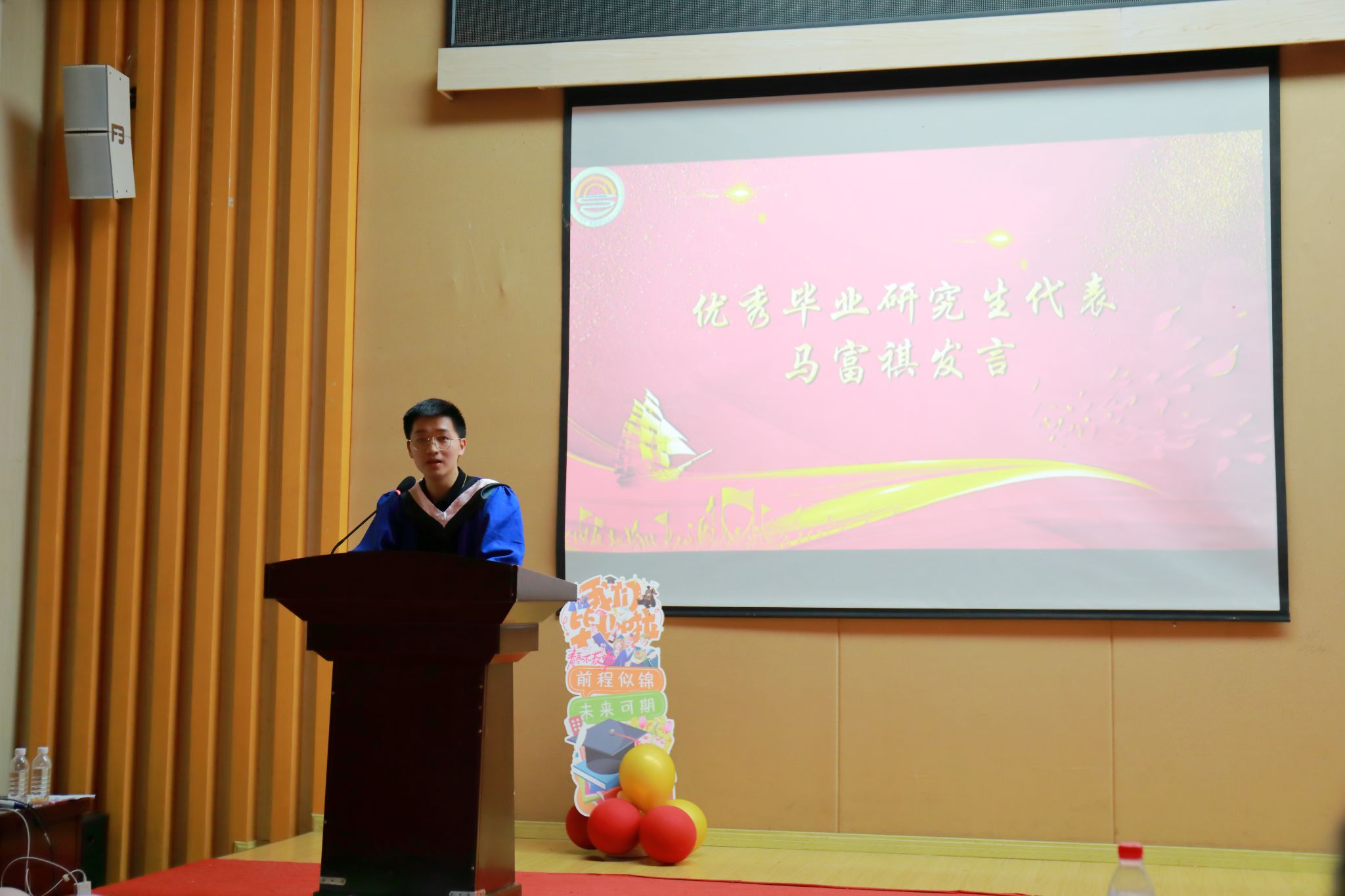2020级智能会计班的王璇和2021级会计学硕班的马富祺,分别作为本硕优秀毕业生代表发言。他们用自己的亲身经历和感悟,分享了自己在校园里的点点滴滴,表达了对母校和老师的感激之情,也期望在未来能够继续发扬母校的精神,为实现自己的人生目标努力拼搏,不负母校和老师的殷殷期待。