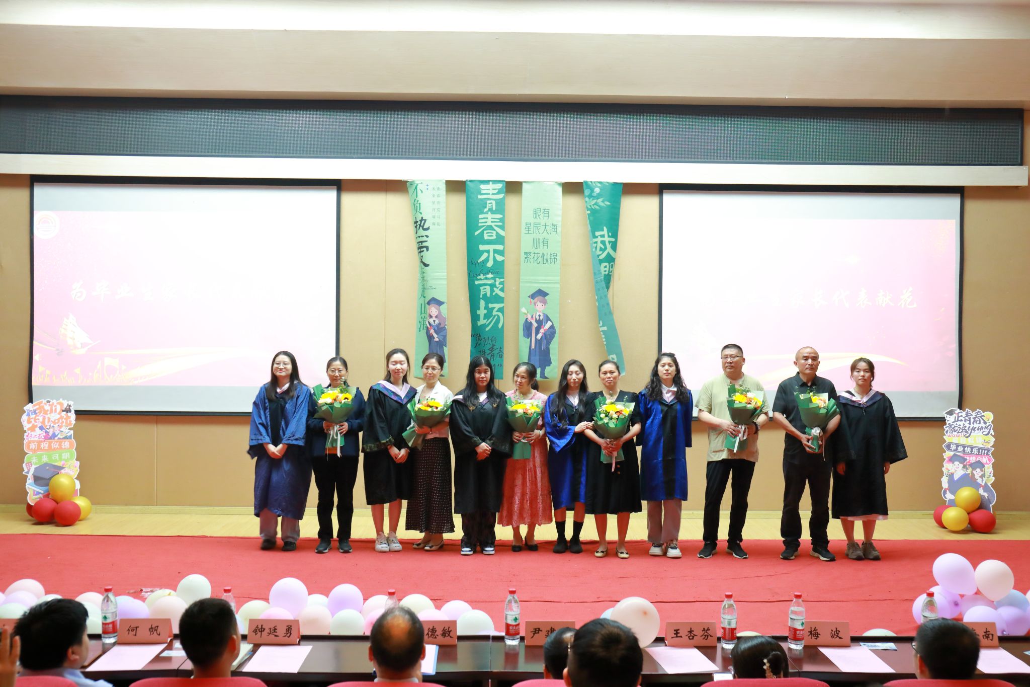 学院2024届毕业生代表们为教师代表、家长代表献上感恩的鲜花。