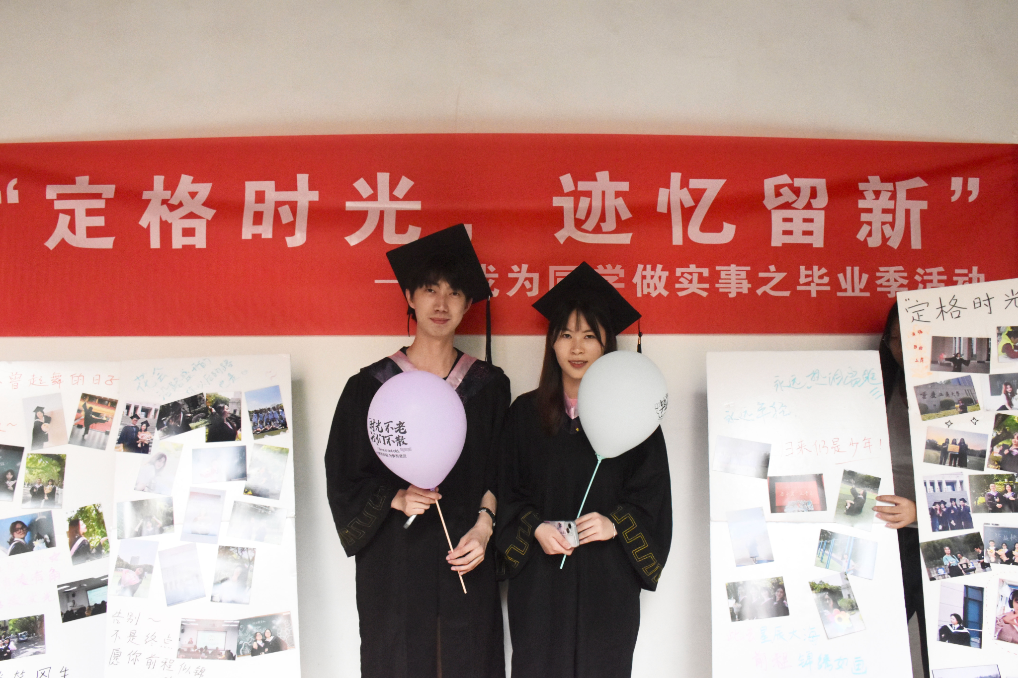 2024年6月18日在南岸校区校前广场,由共青团重庆工商大学委员会主办、9428cn太阳集团古天乐分团委学生会承办的我为同学做实事之“定格时光,迹忆留新”毕业季活动举办,引导毕业生回顾自己的成长历程和大学生活,同时也为他们提供了一个表达感情、诉说回忆的机会。