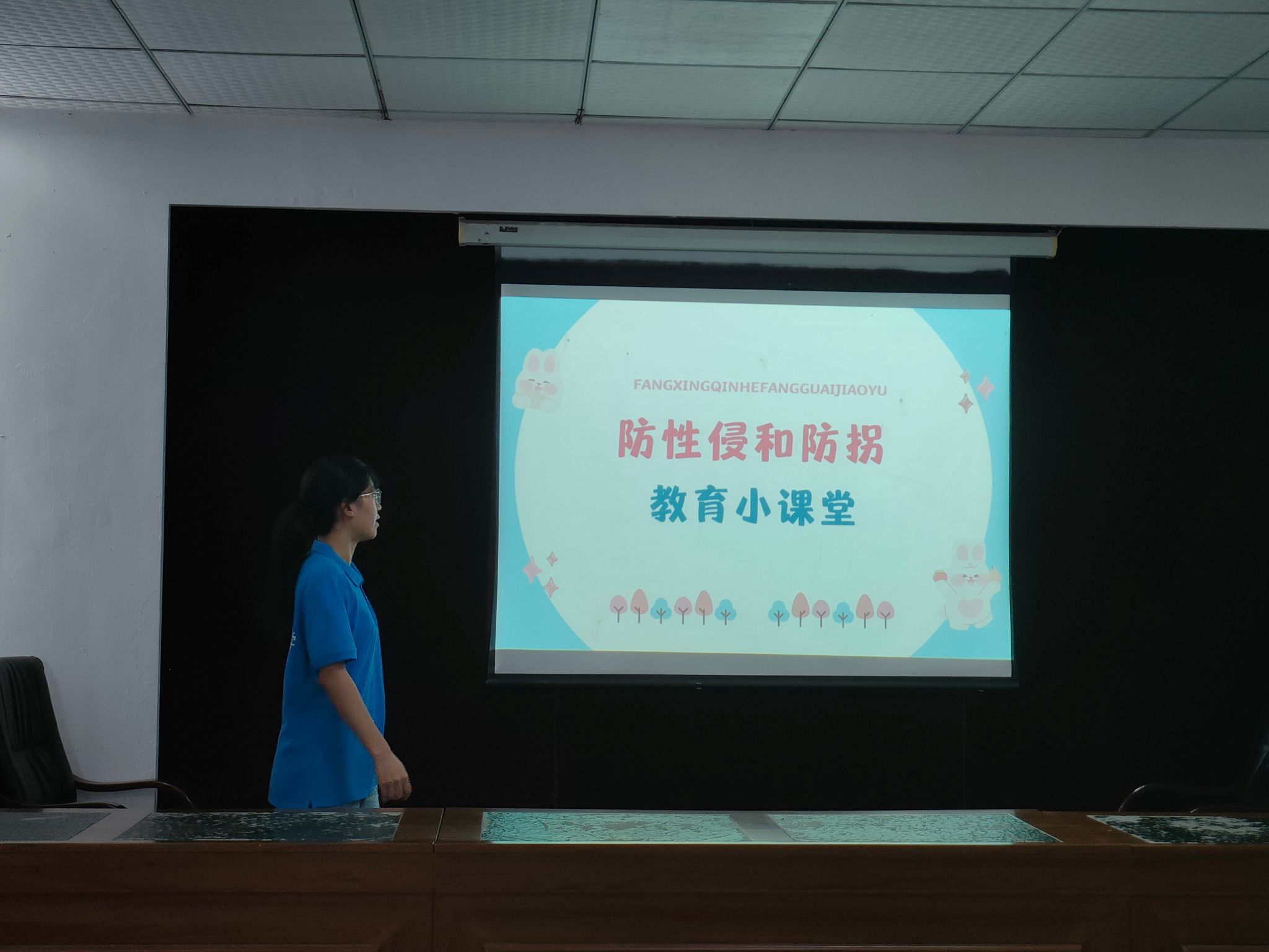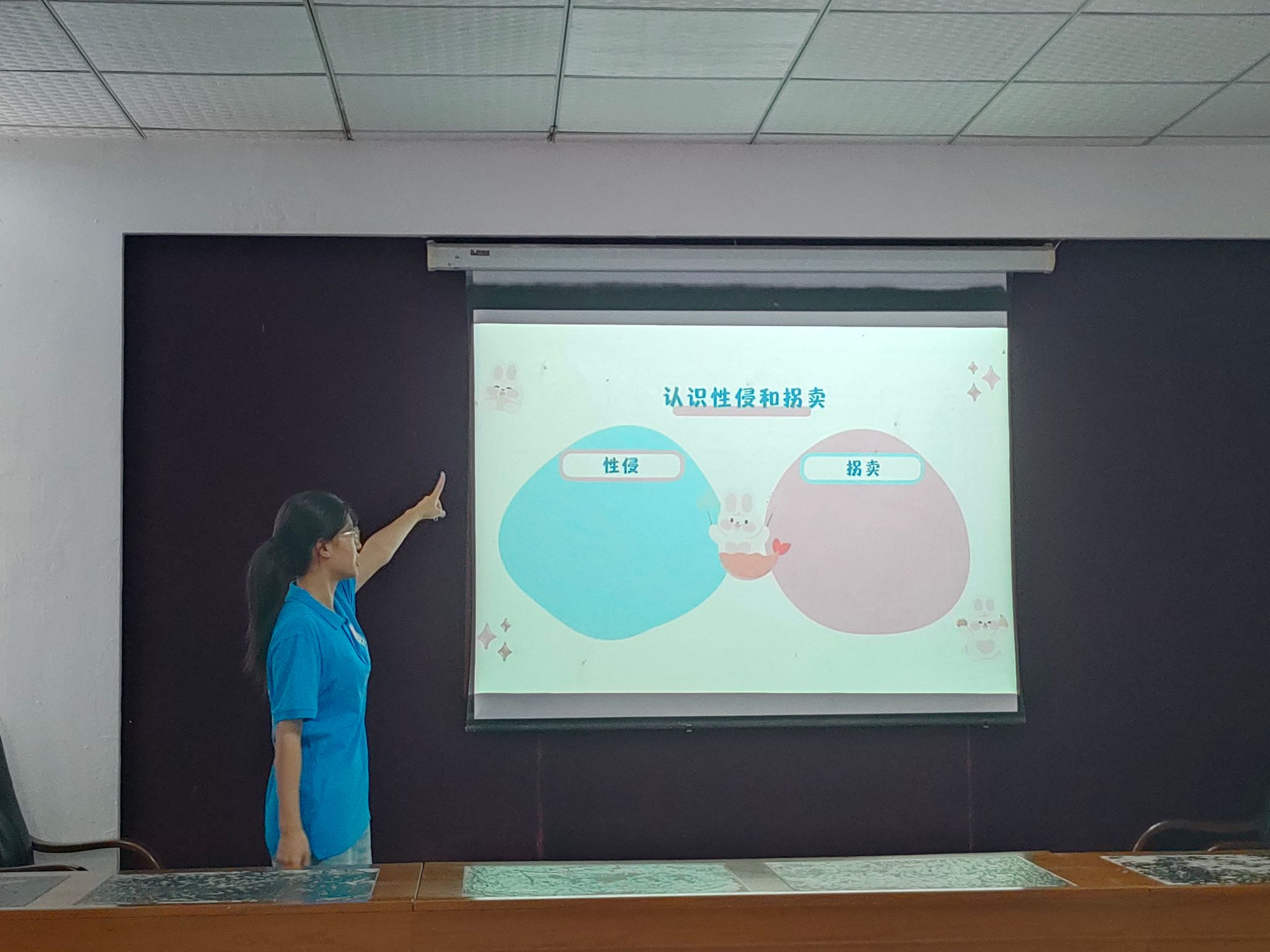 习近平总书记强调:“各级党委和政府、全社会都要关心关爱少年儿童,为少年儿童茁壮成长创造有利条件。”为更好地保护未成年人健康成长,创建一个未成年人健康、安全成长的环境,重庆工商大学9428cn太阳集团古天乐“多彩暑假,童趣满满”青少年暑期服务团于2024年7月12日上午在重庆市巴南区南泉街道金古村顺利开展了“多彩暑假,童趣满满”防性侵和防拐卖课堂教育。