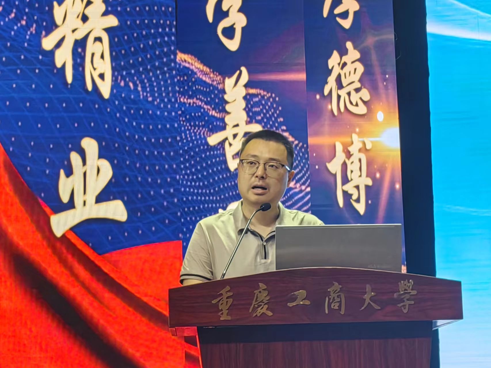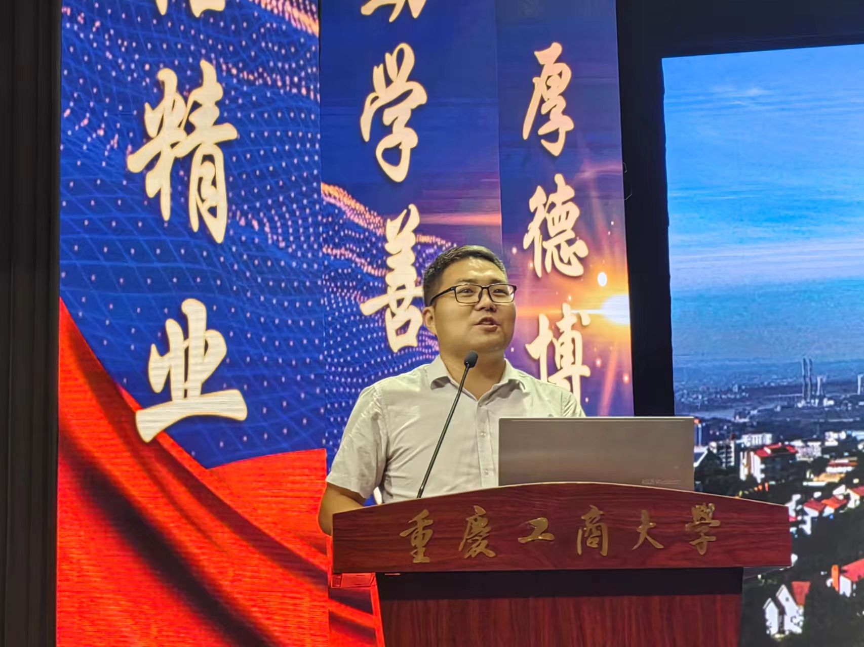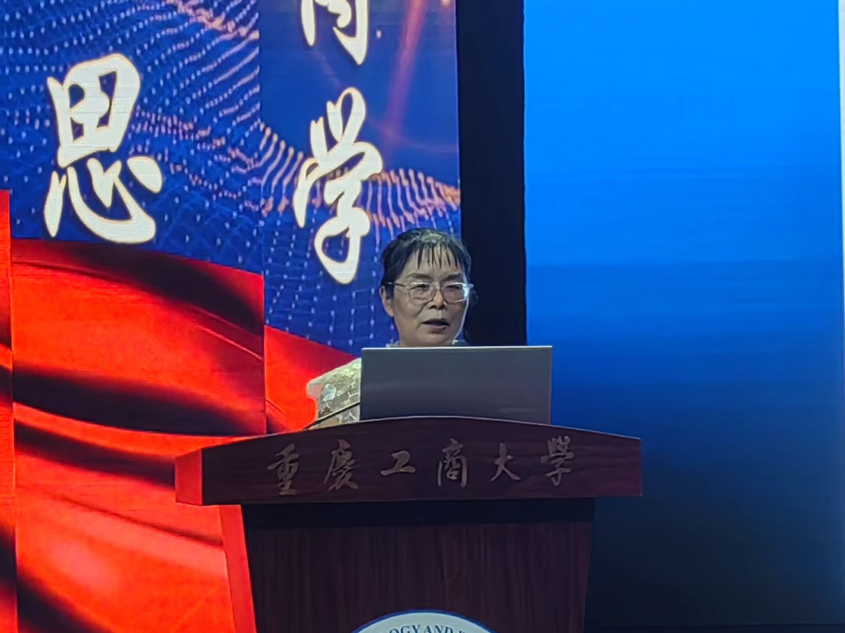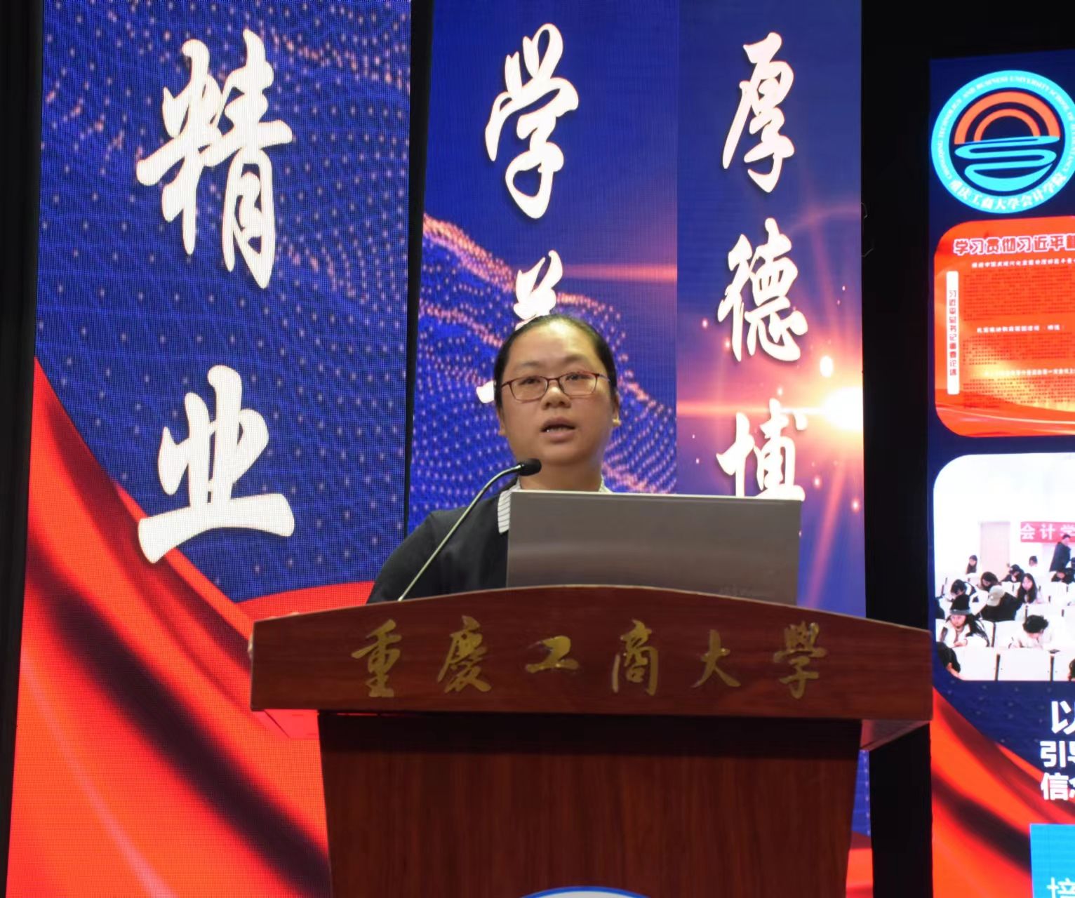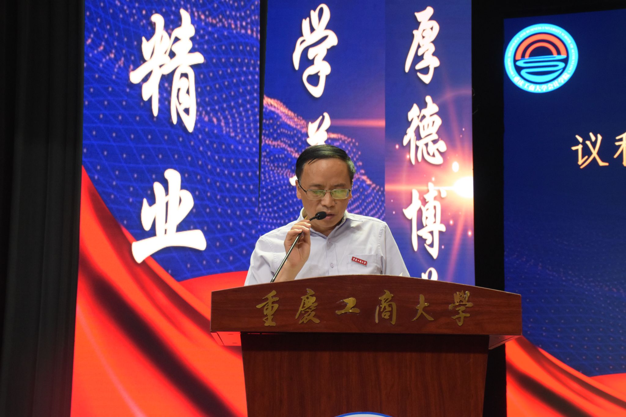 会议最后,全体师生,奏唱重庆工商大学校歌。少年辛苦终身事,莫向光阴惰寸功。