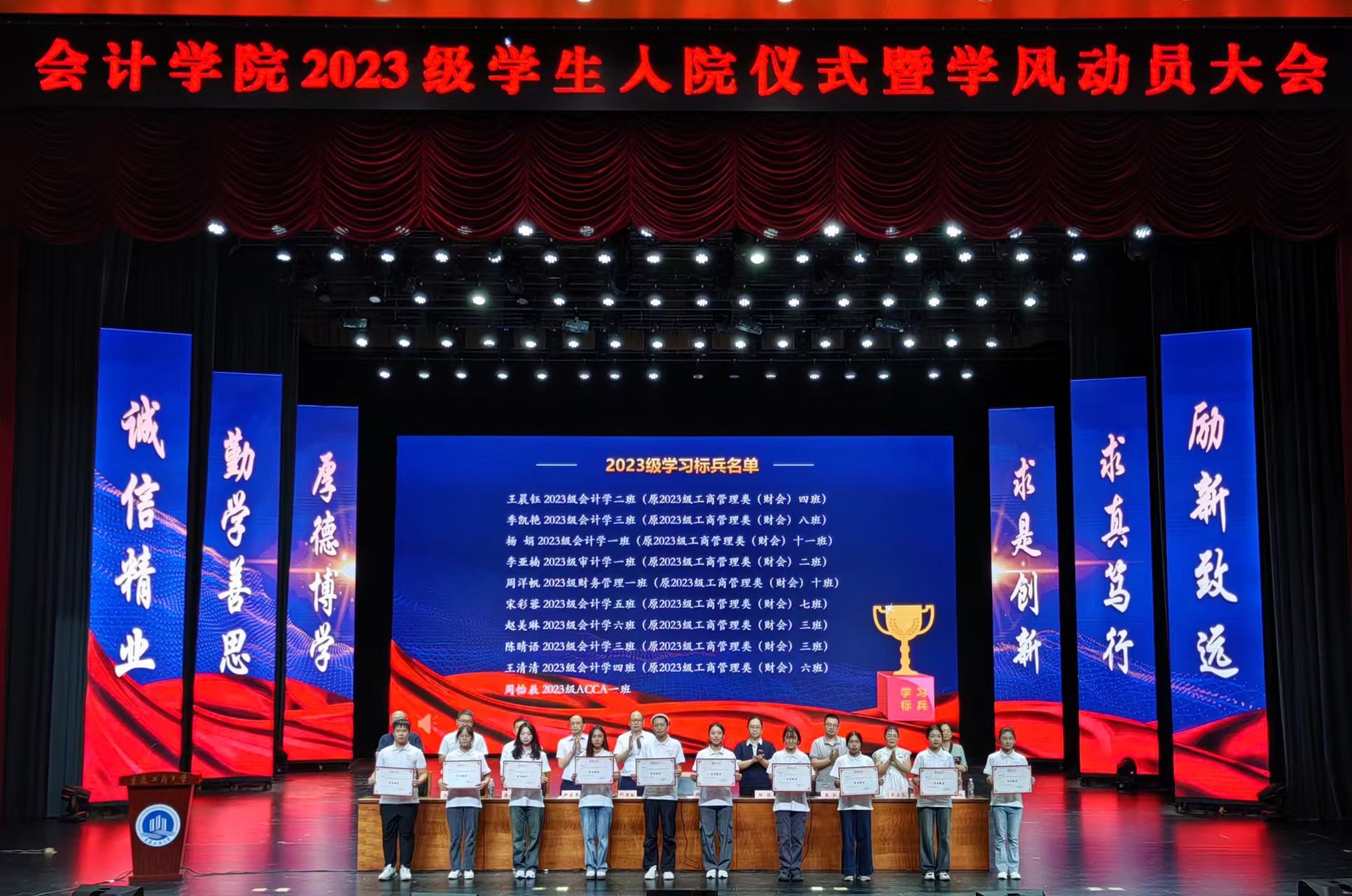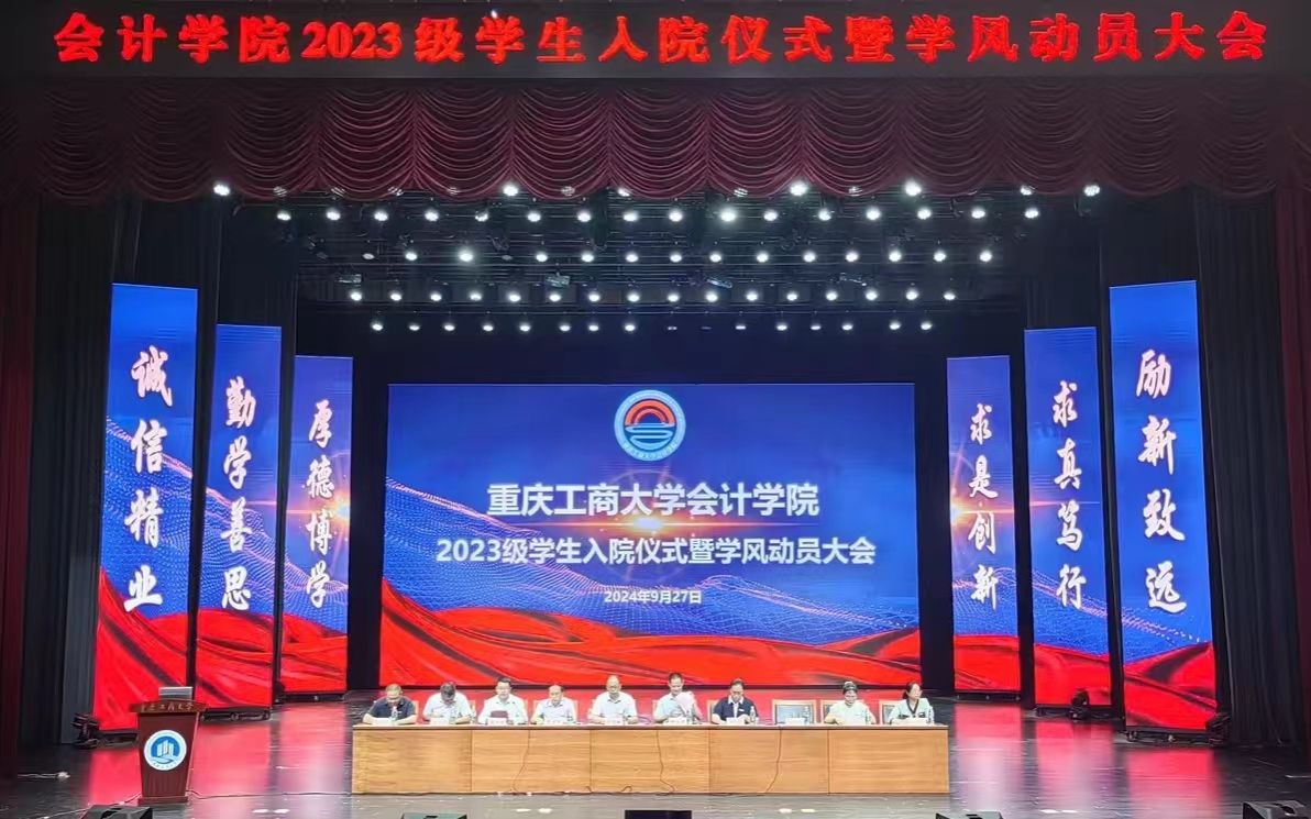 随后,教师代表为2023级学生代表佩戴院徽。邓徳敏书记带领全体同学进行宣誓,许下了会院学子的庄严承诺:尊师重学,求是创新,尚科学之理性;诚信精业,持筹握算,昌会计之文明;含弘自强,经邦济民,担社会之重任。踔厉奋发,不作无益彷徨;勇毅前行,不会懦弱退缩,笃行不怠,不负青春理想。