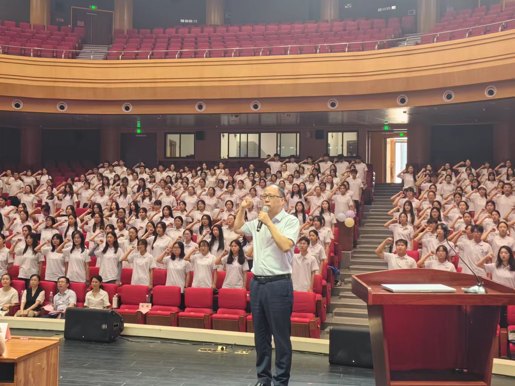大会伊始,全体起立,奏唱国歌,在激昂的国歌声中,全体师生共同见证了这一重要时刻。