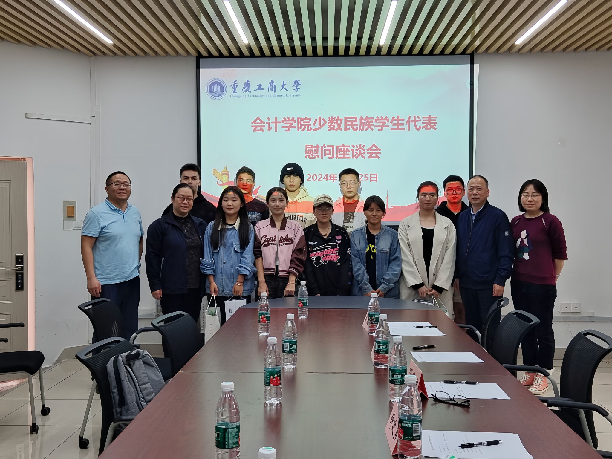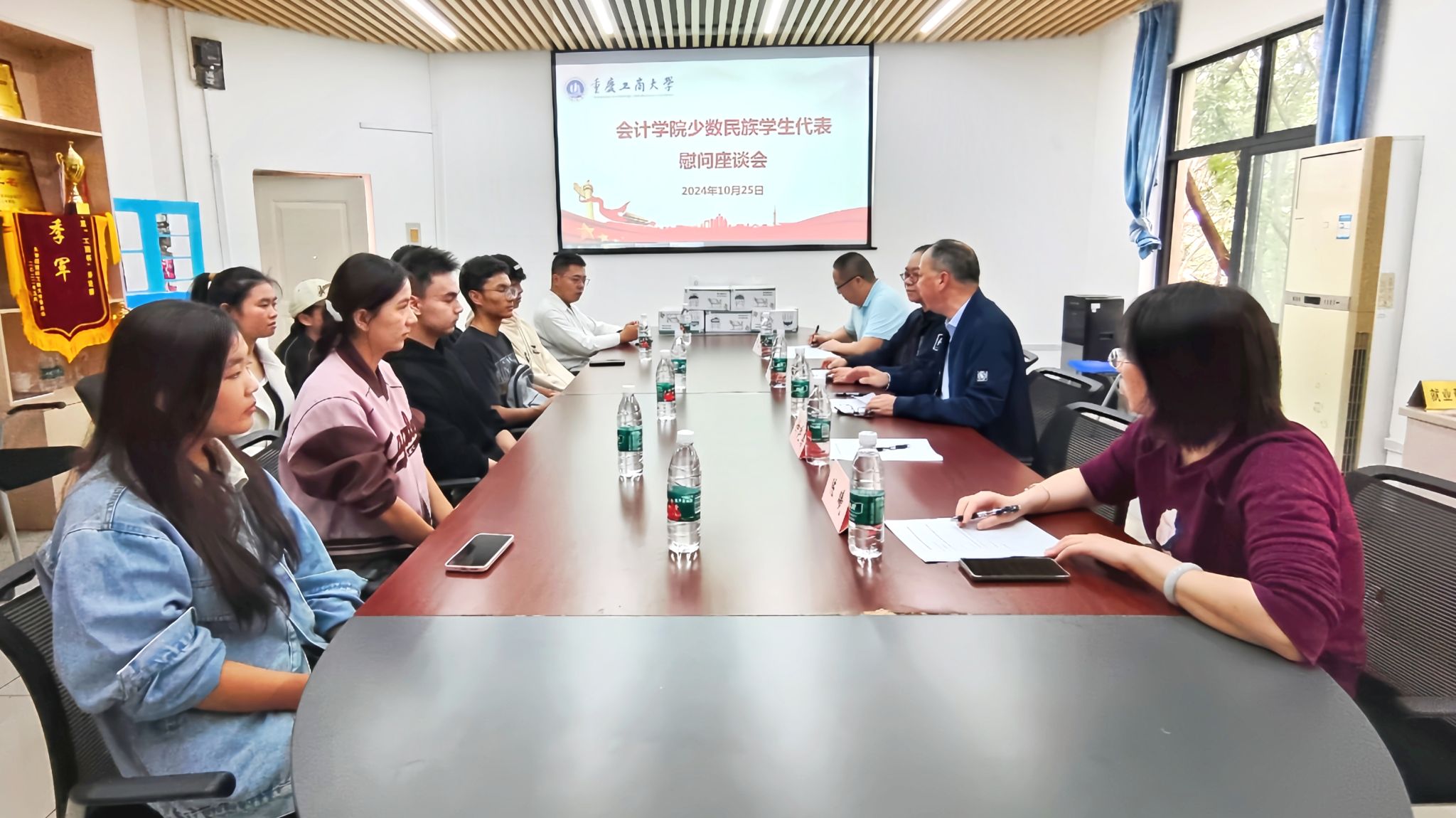 2024年10月25日,9428cn太阳集团古天乐在明德楼2010会议室召开少数民族学生代表座谈会。学院党委书记邓德敏、副书记郝颖、学工办主任彭文涛、辅导员陈曦及10名少数民族学生代表参加了本次座谈会,座谈会由彭文涛主持。
