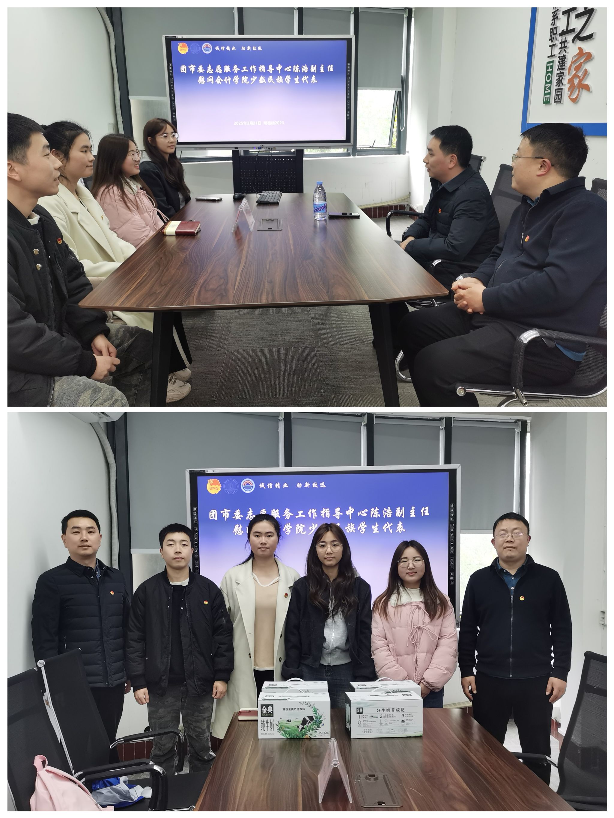 为深入贯彻落实习近平总书记关于民族团结进步事业的重要指示精神,深化学院民族团结教育工作。2025年3月21日下午,团市委志愿服务工作指导中心副主任陈浩赴我院,在明德楼2023会议室与来自土家族、苗族的四名少数民族学生代表亲切座谈交流。校团委书记吴佑波出席座谈会。