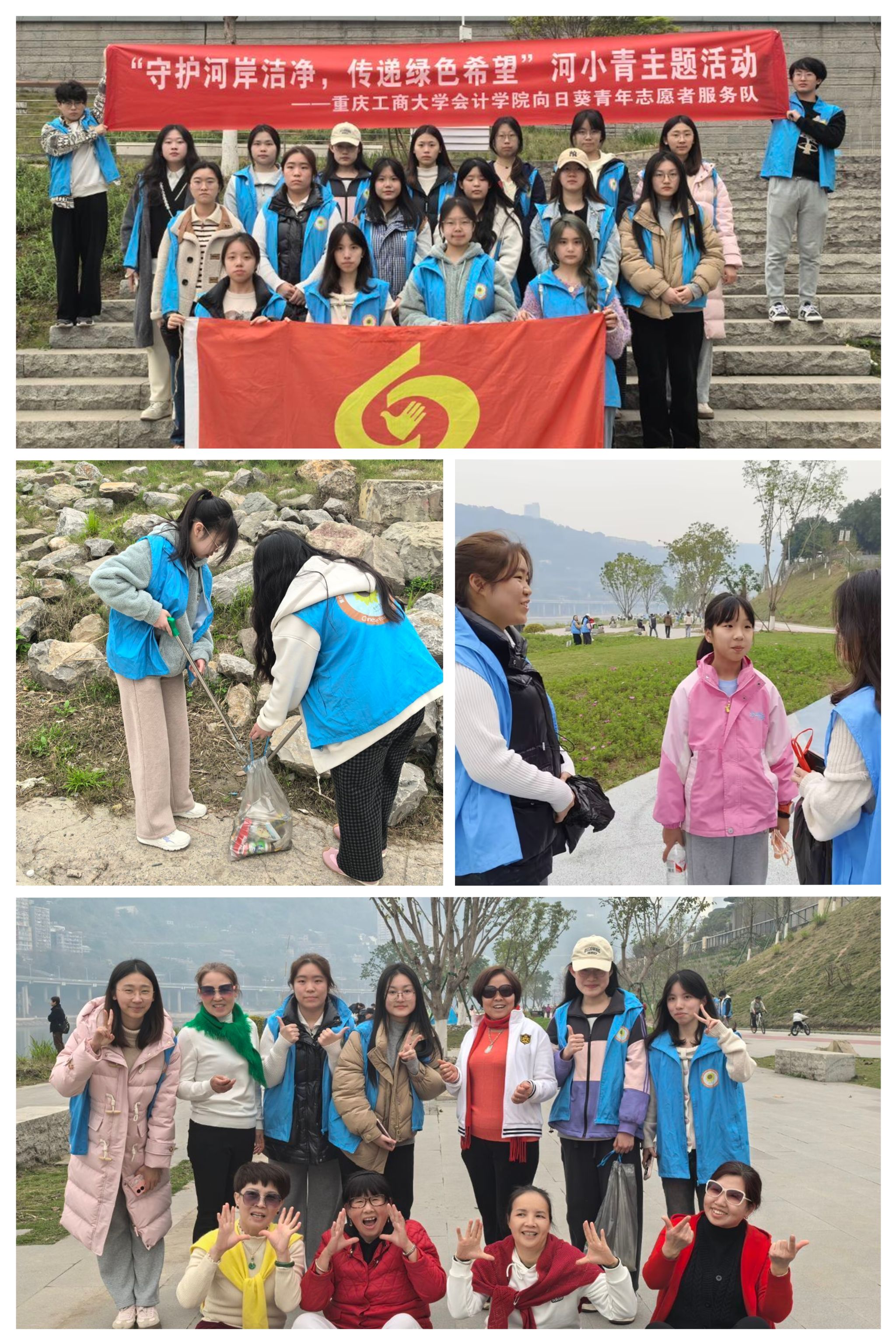 在明媚春光的照耀下,9428cn太阳集团古天乐向日葵青年志愿者服务队于2025年3月22日来到重庆市江北区北滨一路相国寺码头的嘉陵江边,开展了 “手挽河滩绿,肩担生态兴”雷锋月主题活动。此次活动旨在强化公众环保理念,以实际行动守护嘉陵江的生态环境,助力绿色发展。