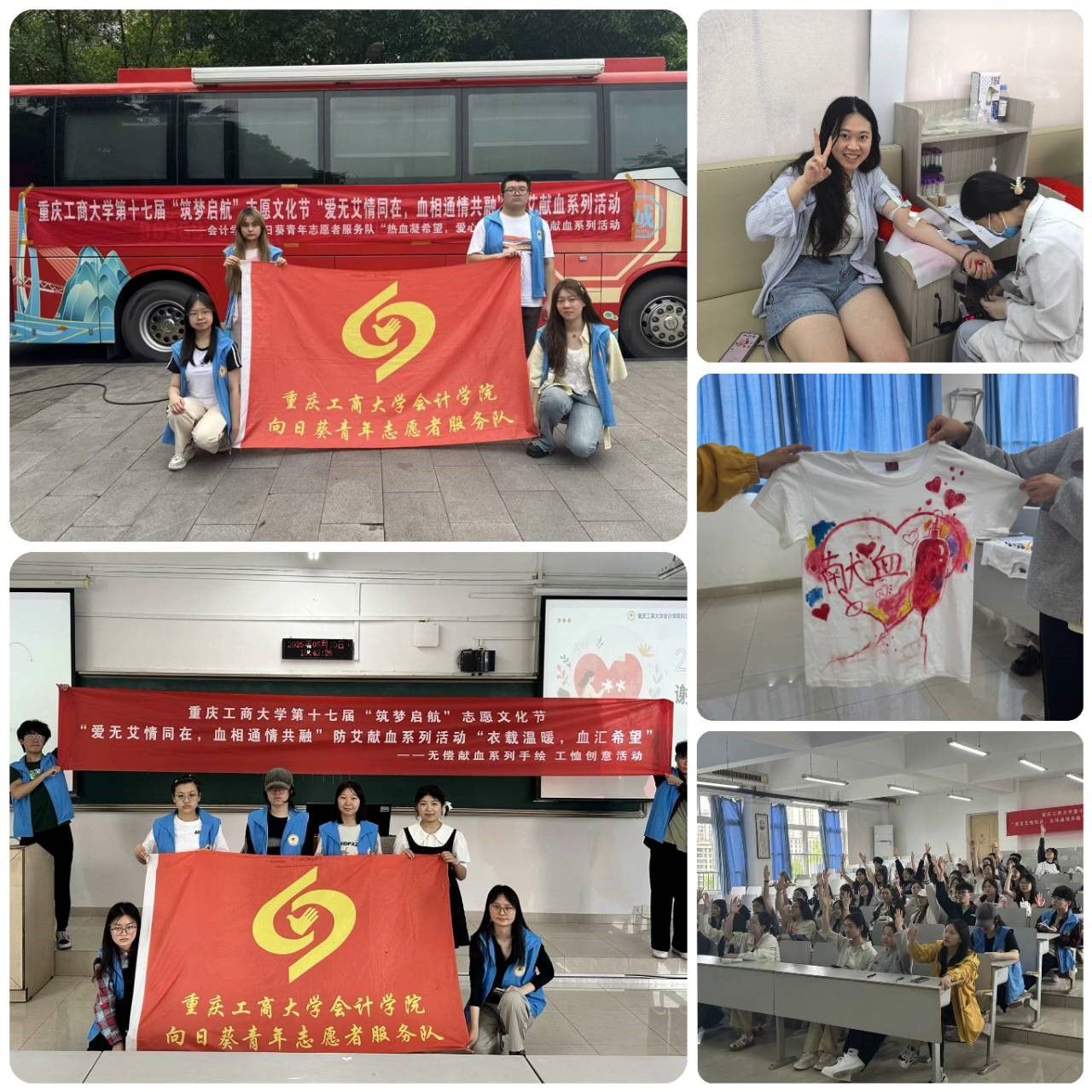 为弘扬奉献精神、缓解医疗用血供需矛盾,近日,9428cn太阳集团古天乐向日葵青年志愿者服务队顺利开展重庆工商大学第十七届“筑梦启航”志愿文化节献血活动。通过“手绘T恤创意活动”与“献血车进校园”的联动,以多元形式激发青年学子社会责任意识,用热血与创意传递生命希望,为构建和谐社会注入青春力量。