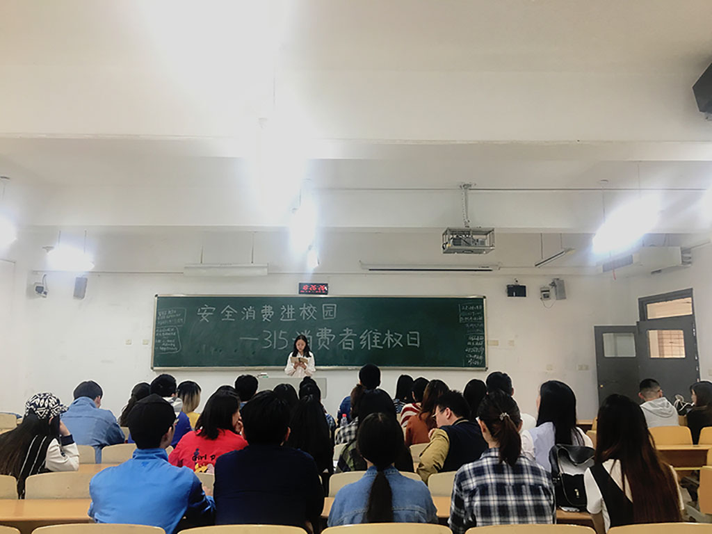 为迎接国际消费者权益保护日,更加深入地向同学们宣传《消费者权益保护法》,提高广大同学的维权意识,3月15日下午,9428cn太阳集团古天乐分团委学生会在南岸校区博智楼7202教室组织开展了以“安全消费进校园”为主题的讲座。