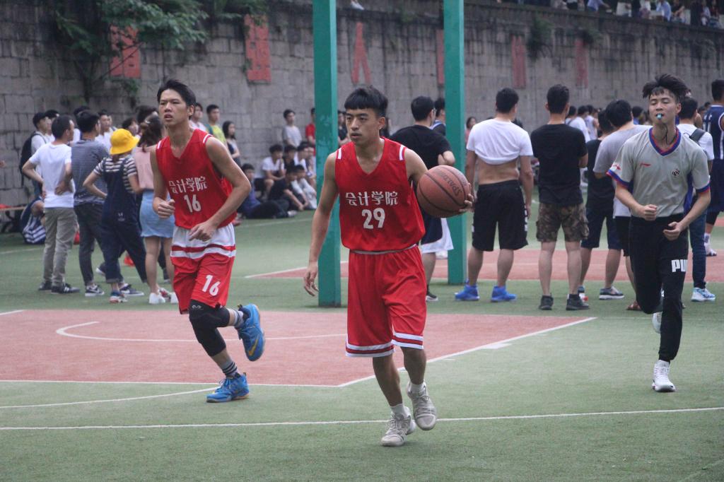 2018年5月8日17时40分,在南岸校区南操体艺馆前的篮球场进行了重庆工商大学第六届“新儒商”大学生体育文化节“工商杯”篮球联赛的四强争夺赛,各参赛队都摩拳擦掌为了更高的荣誉而奋力拼搏。