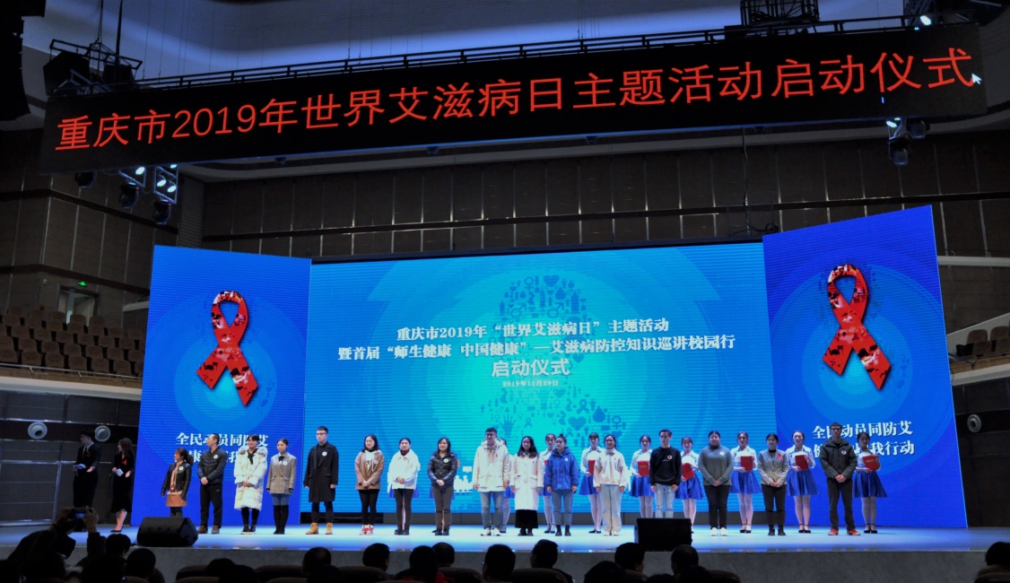 2019年11月29日,由重庆市卫生健康委、重庆市教委举办的“重庆市2019年“世界艾滋病日”主题活动暨首届“师生健康,中国健康”——艾滋病防控知识巡讲校园行启动仪式”在重庆医科大学缙云校区大礼堂顺利开展,9428cn太阳集团古天乐向日葵义工志愿者协会在第四届“青年爱不艾”高校社团项目路演活动中荣获市级三等奖,彭文涛老师荣获市级优秀指导奖,因此受邀参与此次活动的防艾展演与受奖。