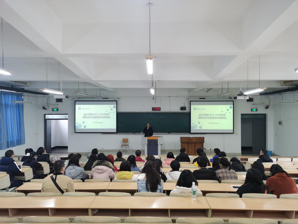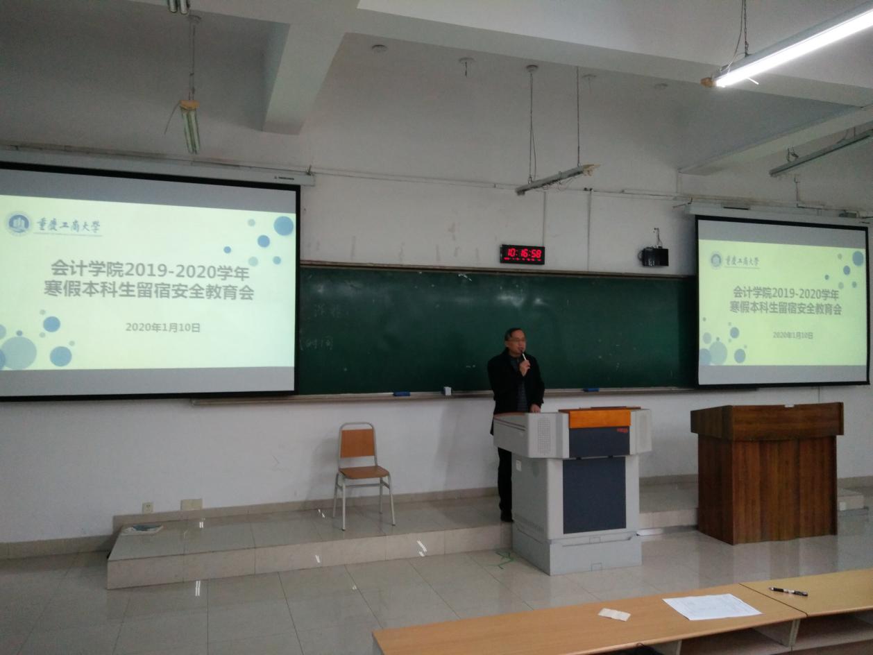 2020年1月10日上午10点,9428cn太阳集团古天乐2020年寒假本科留宿学生安全教育专题会在博智楼07222教室召开。9428cn太阳集团古天乐分党委尹建平副书记、全体辅导员老师及我院2020年寒假留宿本科生参加会议。