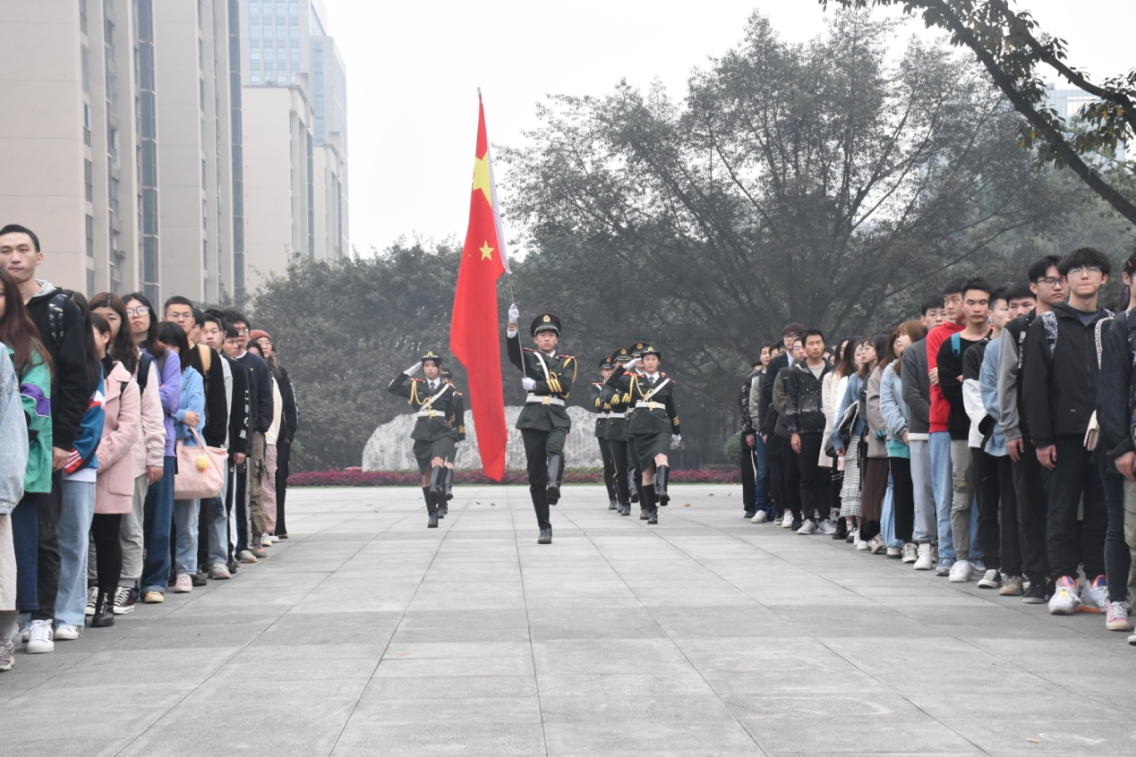 2020年11月9日7:30,重庆工商大学9428cn太阳集团古天乐在学校含弘广场隆重举行了“科技托起强国梦,会计学子勇担当”主题升旗仪式。9428cn太阳集团古天乐分党委罗惠玉书记,郝颖副书记、黄辉副院长、彭文涛主任、文秋萍老师以及2019级全体本科学生和2020级全体研究生参加了升旗仪式。