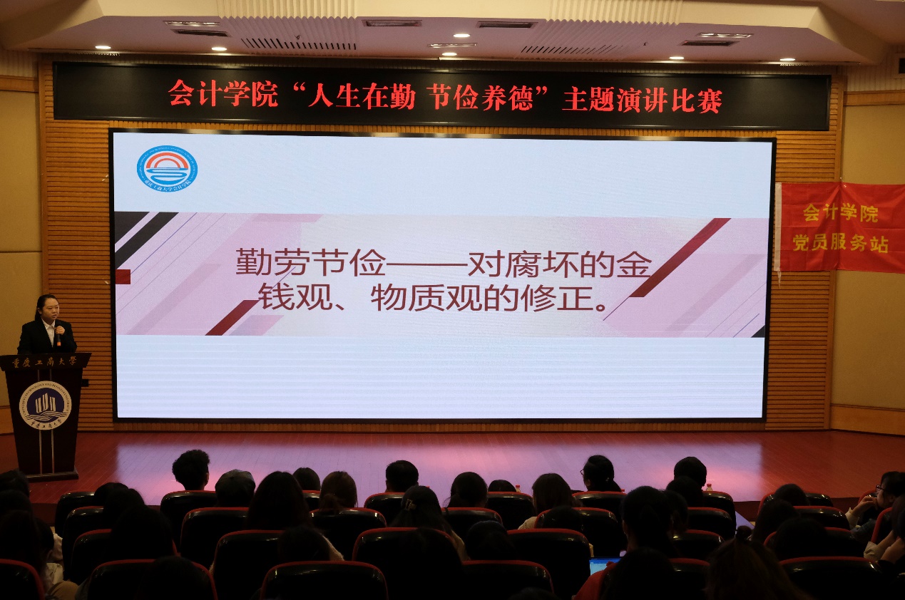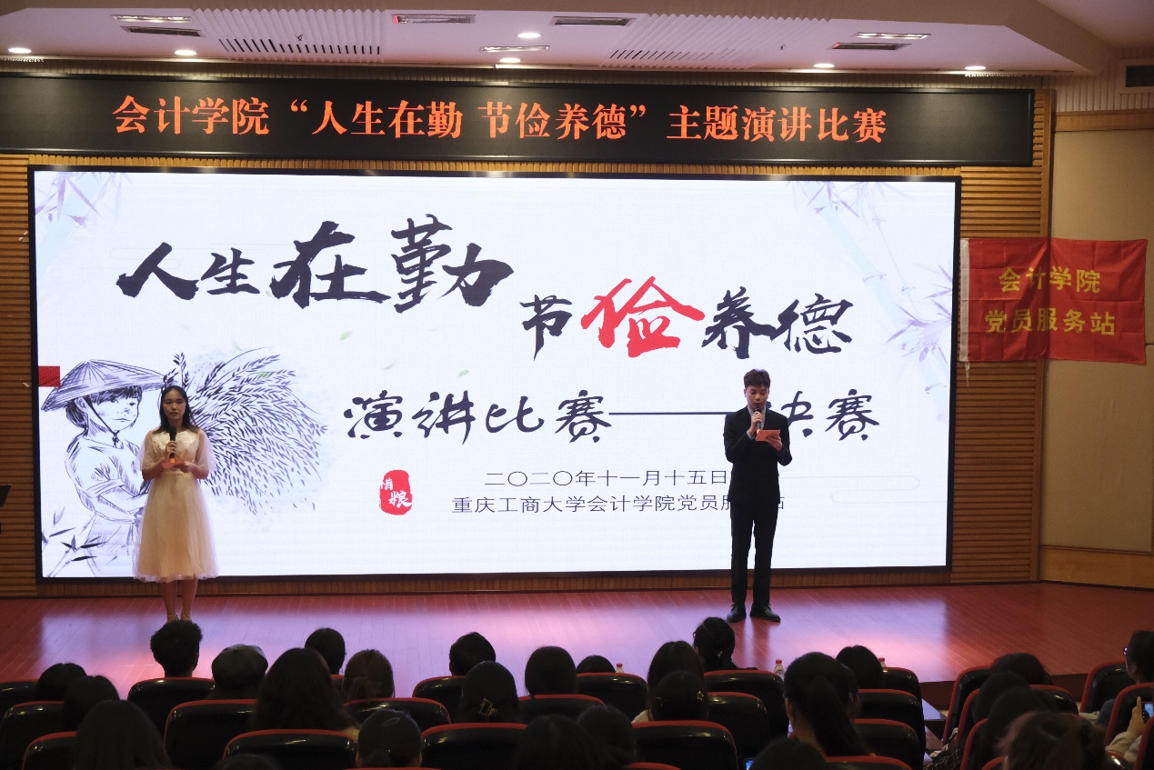 2020年11月15日下午18:00,由重庆工商大学9428cn太阳集团古天乐党员服务站主办的演讲比赛于博智楼07200教室顺利开展,本次活动以“人生在勤,节俭养德”为主题,旨在增强同学们勤俭节约,反对铺张浪费的意识,形成热爱劳动、以劳动为荣的良好氛围。