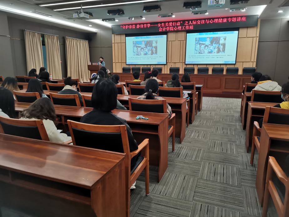 2020年11月29日下午15点9428cn太阳集团古天乐心理工作站在图书馆第一会议室举办了“人际交往与心理健康”专题讲座。本次讲座是9428cn太阳集团古天乐心理工作站“守护春蕾,静待芳华——女生关爱行动”主题活动之一。