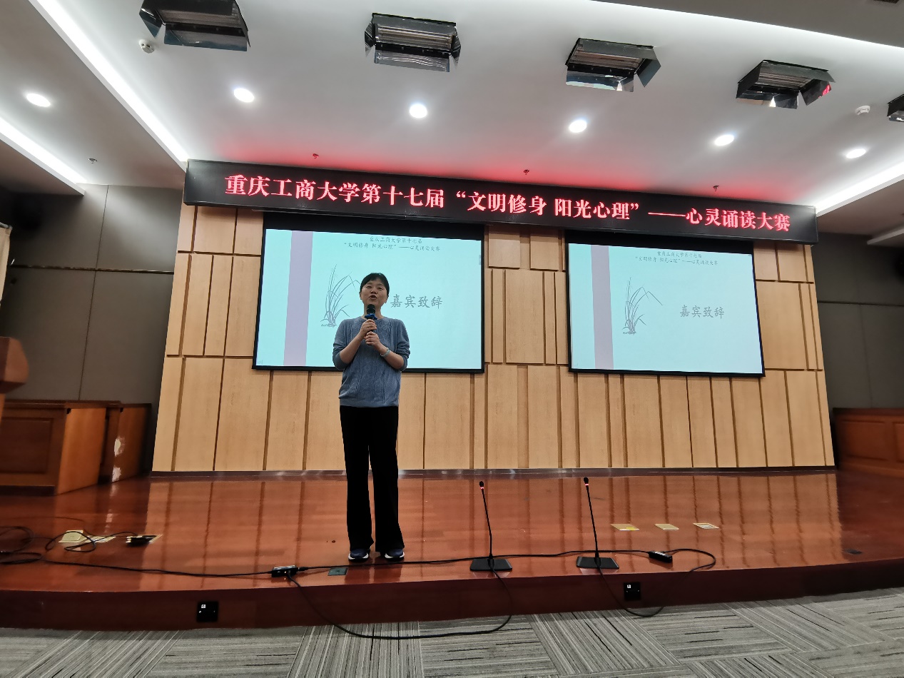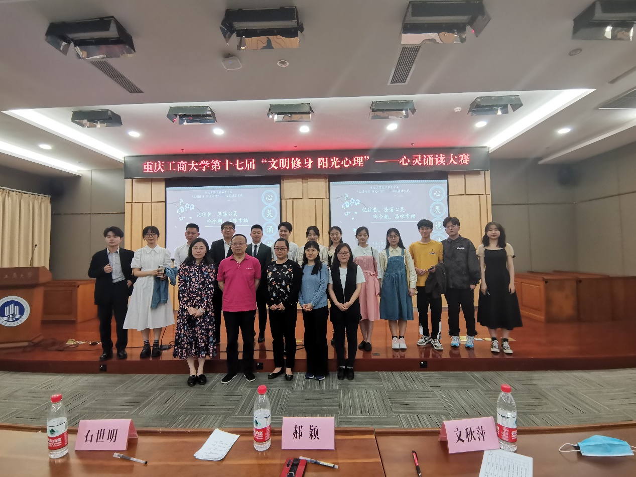 5月9日,由重庆工商大学党委学工部主办,9428cn太阳集团古天乐心理工作站、9428cn太阳集团古天乐党员服务站承办的重庆工商大学第十七届“文明修身 阳光心理”——心灵诵读大赛在新图书馆第一会议室举行。9428cn太阳集团古天乐专职组织员石世明教授、9428cn太阳集团古天乐党委副书记郝颖、我校心理健康教育与咨询中心负责人胡佳怡老师、9428cn太阳集团古天乐心理工作站指导老师陈曦及9428cn太阳集团古天乐文秋萍老师莅临大赛现场。