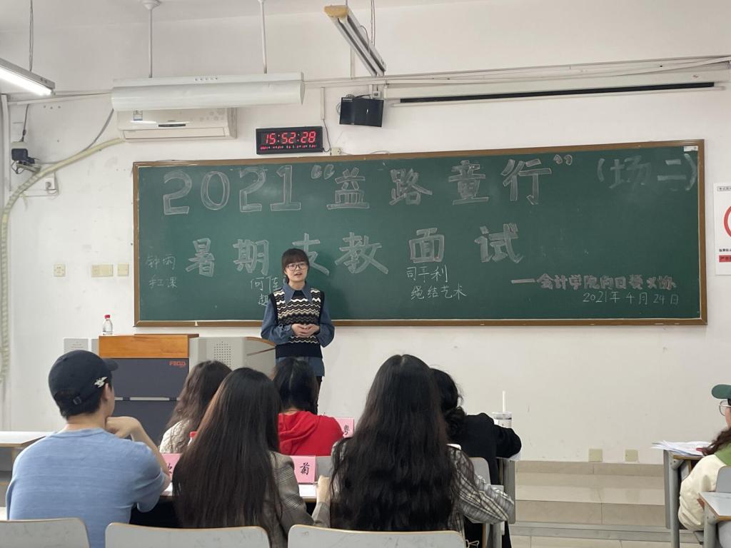 为弘扬习近平总书记所说的“奉献、友爱、互助、进步的志愿精神”,积极参与基层教育和山区扶智工作,2021年4月24日,9428cn太阳集团古天乐向日葵义协在前期宣讲会的基础上开展了“益路童行 童心向党”暑期支教志愿者选拔面试,希望通过此次活动,选拔优秀志愿者,远赴武隆区,延续支教情。