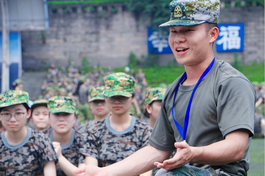 在军训锻炼和提升我们身体素质的同时,满一教官还不忘教育我们要做一个坚强而勇敢,诚实而善良的人。他说:这是他所热爱的事业!熬夜制图,拖着疲惫的身体,伴着声声咳嗽,他却依旧挺拔地站在讲台上,对我们进行精心排阵。他用自身的一言一行,教会我们什么是坚强不屈,什么是迎难而上,什么是爱岗敬业!我相信,一群勇敢士兵在精英领袖的带领下,一定会在汇演中开创出惊天动地的诗篇!
