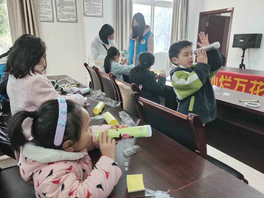 扎染活动中,青少年学习扎染的文化,了解扎染的几种扎布方法,对传统技术有了更深入的了解;牛奶山水画实验课堂上,青少年动手滴入五颜六色的墨水,利用洗洁精和牛奶的化学反应,绘制出美丽的山水画;万花筒活动中,青少年通过转动自己制作的万花筒,观察光学的神奇之处……家长也在活动开展中陪伴小朋友,记录下小朋友愉快欢乐的笑脸,对这一类的志愿服务表示支持。志愿者虽然都是已经成年的大学生,但也会被活动现场的氛围所吸引,沉浸式参与进活动当中,更有甚者,志愿者与小朋友建立了良好的友谊,互相畅谈,完成了跨年龄的友谊碰撞!