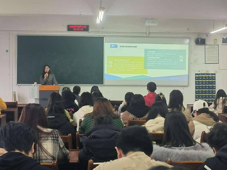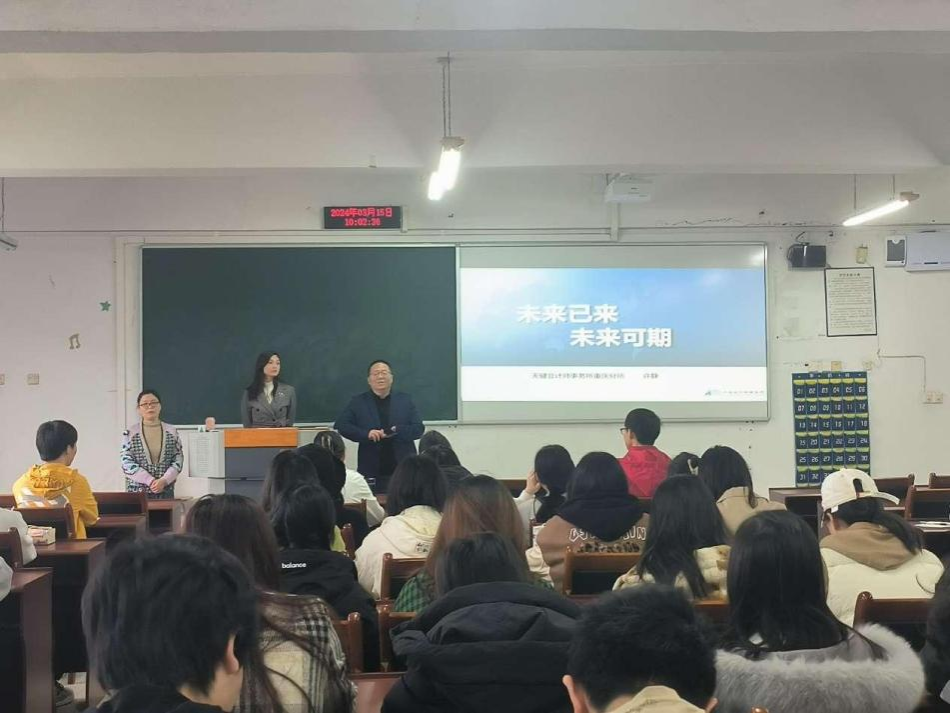 2024年3月15日上午,9428cn太阳集团古天乐国际教育中心在博智楼7604举行了“未来已来,未来可期”专题讲座。本次讲座由9428cn太阳集团古天乐国际教育中心组织,天健会计师事务所人力资源总监许静女士为大家进行专题分享,2022级国际项目班全体同学共同参加。