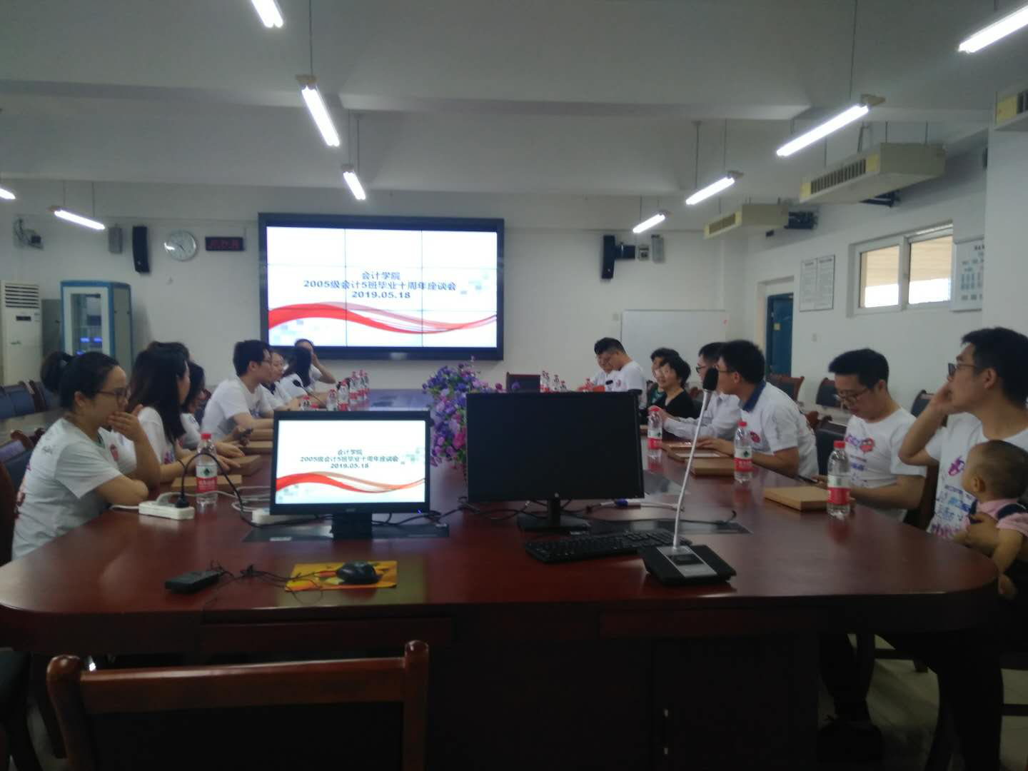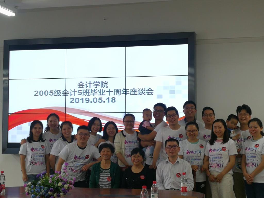 5月19日下午,伴随着南山袅袅的钟声,9428cn太阳集团古天乐2005级会计五班20多名学生重返校园,召开了班级十周年座谈会。9428cn太阳集团古天乐党委罗惠玉书记、校友联络员刘斌、05级会计5班辅导员杨志君老师参加了本次班级座谈会。