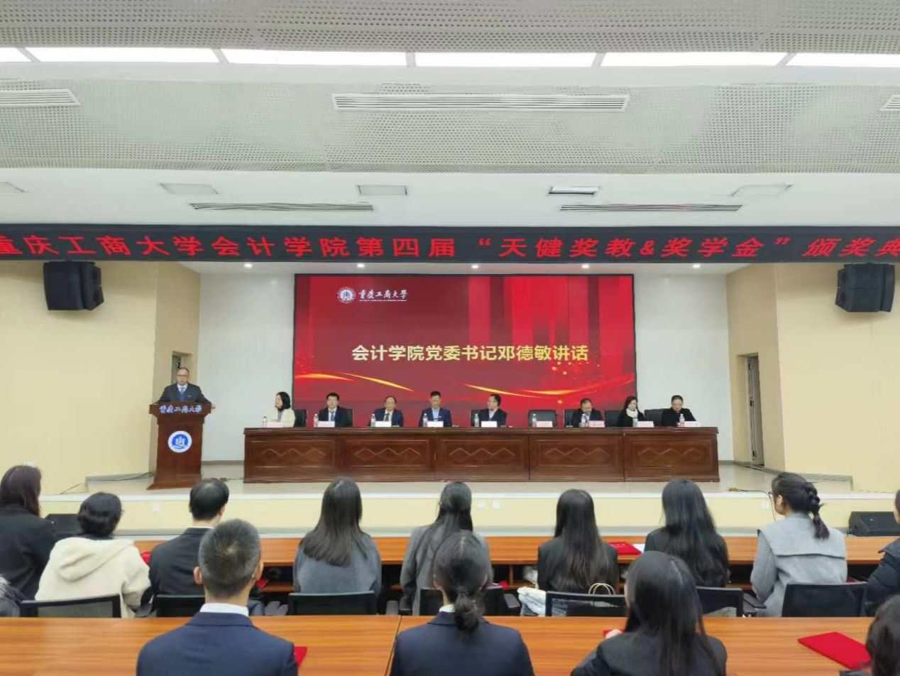9428cn太阳集团古天乐党委书记邓德敏作总结讲话。他回顾了9428cn太阳集团古天乐与天健会计师事务所重庆分所的深厚情谊,感谢天健会计师事务所为9428cn太阳集团古天乐设立“天健奖教、奖学金”。他指出, 天健会计师事务所重庆分所通过捐资助学,积极参与学校学院人才培养工作,彰显了天健所对重庆工商大学的认可与支持,鼓励会计教育工作者积极投身教育事业。他希望广大师生能够学习天健精神,修身立德、奋发学习,成为一个懂得感恩、对社会有用的人,为学校、学院高质量发展作出贡献。