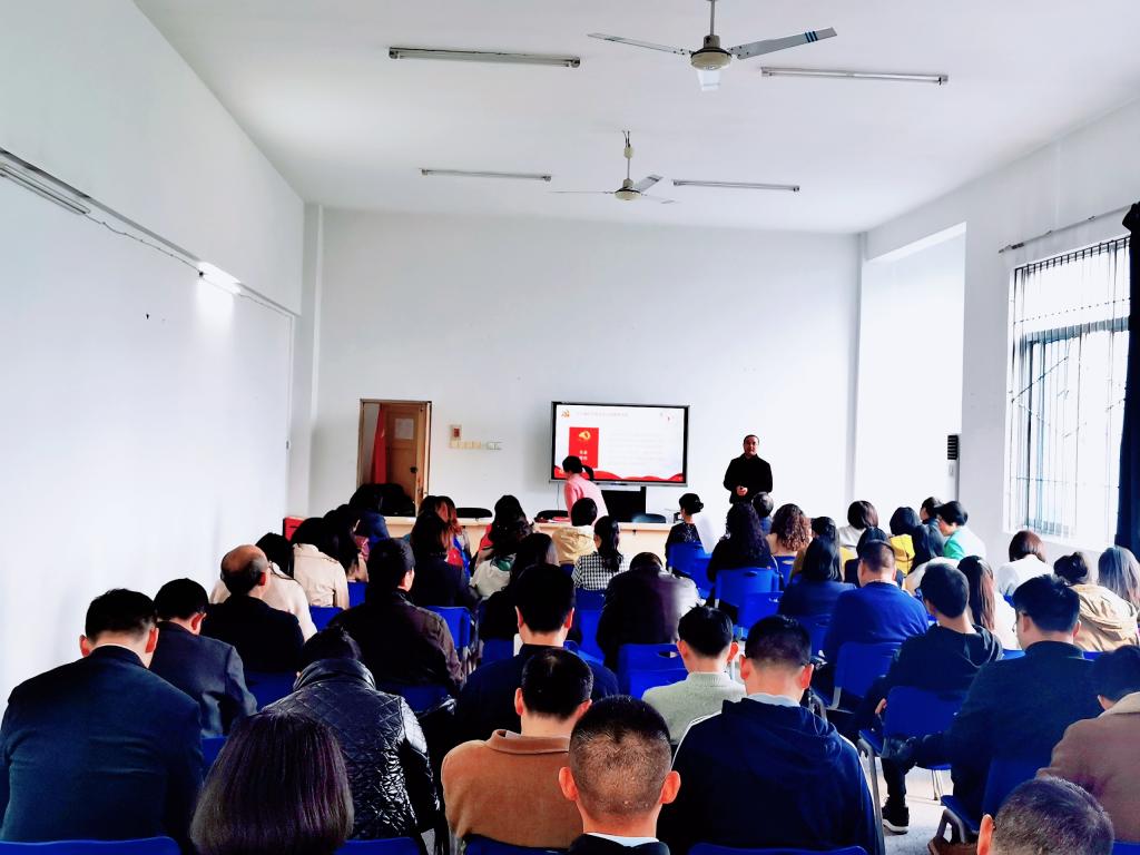 11月16日下午,9428cn太阳集团古天乐党委在明德楼2021会议室召开教职工大会,集中学习了《中国共产党第十九届中央委员会第四次全体会议公报》,随后教工第一第二支部全体党员集中学习了习近平总书记在十九届四中全会上的重要讲话。教工第一支部书记石道元等同志带头交流了学习体会。