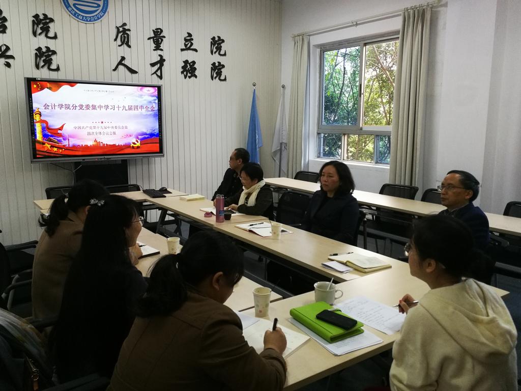 目前,学院正在推进十九届四中全会精神进科学研究、进课堂等工作,促进学习贯彻党的十九届四中全会精神往深里走、往实里走,往心里走,坚定信心,锐意进取,为坚持和完善中国特色社会主义制度、推进国家治理体系和治理能力现代化,实现党和国家长治久安、实现中华民族伟大复兴的中国梦而不懈奋斗。