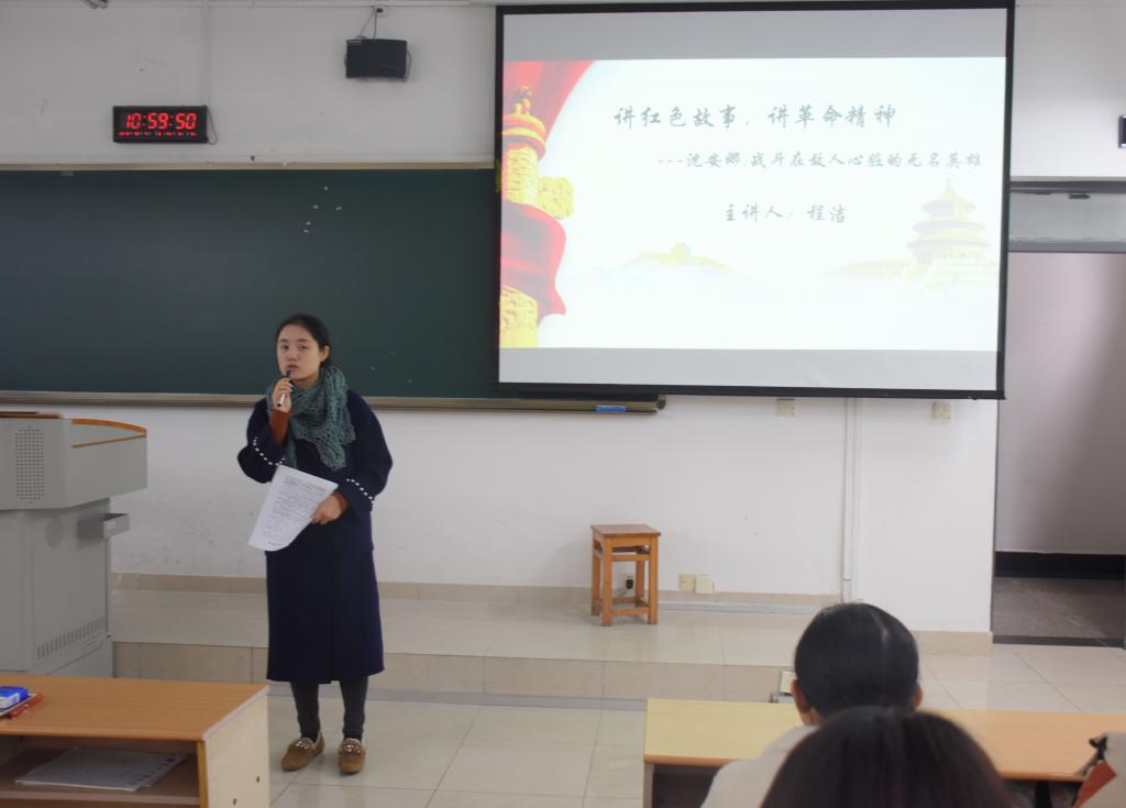 为认真学习党的历史,用好红色资源,讲好红色故事,传承红色基因,坚定理想信念,推动学院“不忘初心、牢记使命”主题教育走深走实,2019年12月4日上午,9428cn太阳集团古天乐在博智楼7206开展了讲红色故事、讲红色精神活动。参加本次活动的有学工办主任彭文涛老师、辅导员王婷老师、程洁老师,以及红岩精神示范班2017级财务管理二班、2018级ACCA一班、二班的全体同学。活动由彭文涛老师主持。
