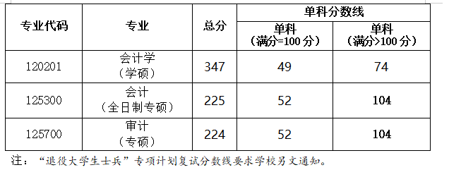 注:“退役大学生士兵”专项计划复试分数线要求学校另文通知。