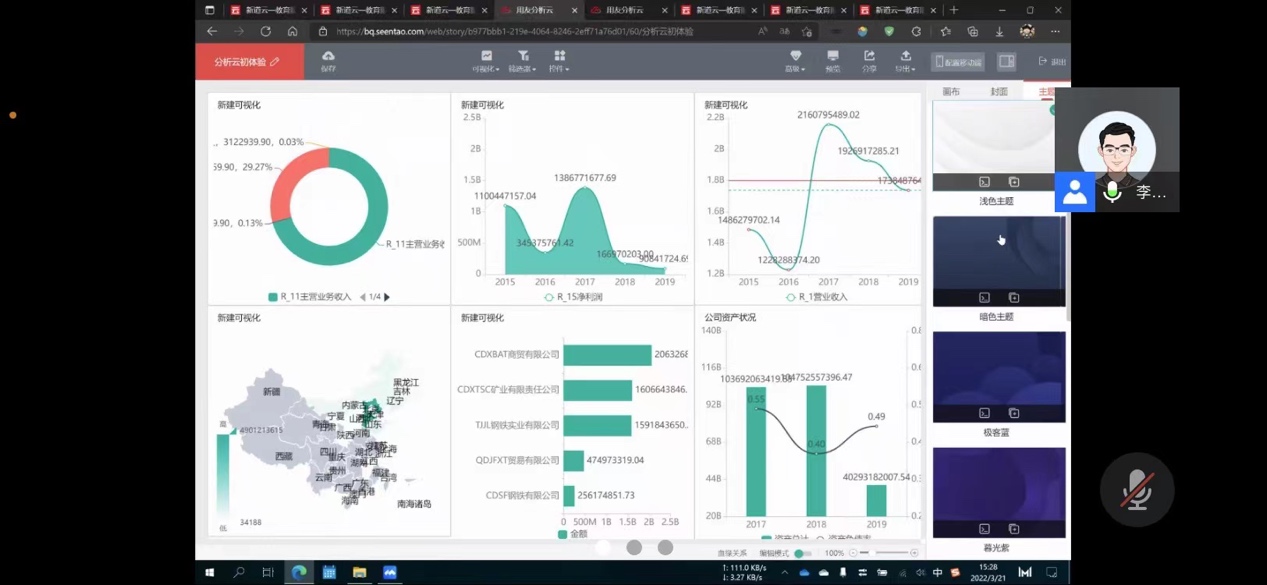 第六期教学工作坊以大数据与财务决策为主题,新道公司高级讲师李志良指导同学们运用新道云软件里的分析云系统对上市公司进行经营数据的分析。李老师带领同学们通过上传数据源,并且对数据进行处理实现了数据可视化。