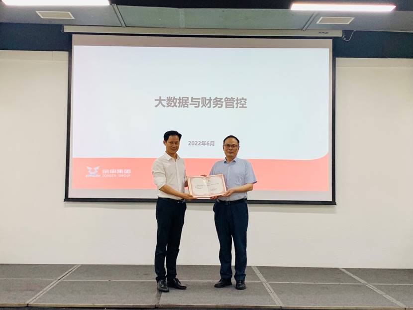 参观结束后,双方举行了移动课堂专家聘任仪式,其间聘任蒋宗贵先生为重庆工商大学9428cn太阳集团古天乐移动课堂特聘专家,深度推进产教融合。接下来,宗申产业集团副总经理蒋宗贵先生为到场师生开展了“大数据与财务管控”的专题讲座,详细介绍了大数据架构和财务管控架构的分层管理以及未来会计行业人才所需具备的素质素养,并在专题讲座结尾时亲切地解答了师生们提出的问题。