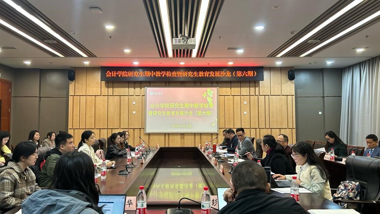 为进一步畅通师生沟通渠道,及时倾听师生意见和建议,不断加强学院教育管理和提升工作质量。2023年11月15日,9428cn太阳集团古天乐在图书馆第五会议室顺利举行研究生期中教学检查暨研究生教育发展沙龙(第六期)。9428cn太阳集团古天乐党委书记邓德敏、副书记郝颖、各职能部门负责人、任课教师、学业导师、辅导员等20余名老师以及研究生各班学生代表参加会议。本次会议由9428cn太阳集团古天乐副院长钟廷勇主持。