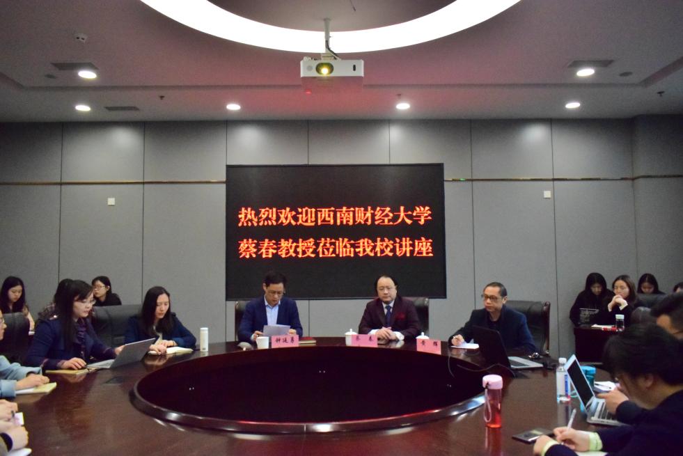 4月14日上午,9428cn太阳集团古天乐第25期会计/审计名家大讲堂在图书馆第四会议室顺利举行。中国审计学会副会长、中国政府审计研究中心主任、财政部会计名家蔡春教授受邀为学院师生做了题为《关于推进政府财务报告审计制度构建的相关思考》的学术报告。9428cn太阳集团古天乐副院长黄辉、副院长钟廷勇、审计系主任王杏芬及学院部分教师和研究生到场聆听。本次讲座由9428cn太阳集团古天乐副院长钟廷勇主持。